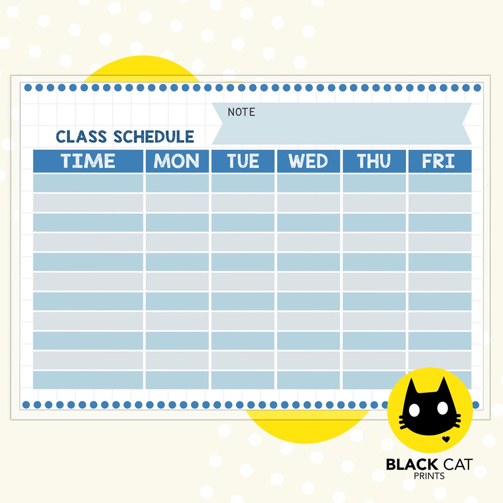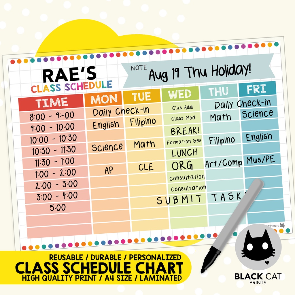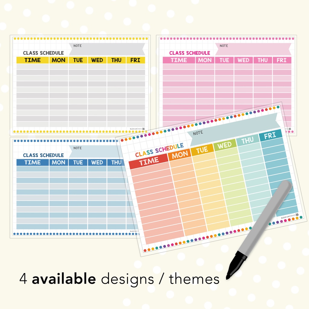 Class Schedule Sheets (Reusable / Personalized / High Quality Print / A4 Size / Laminated)