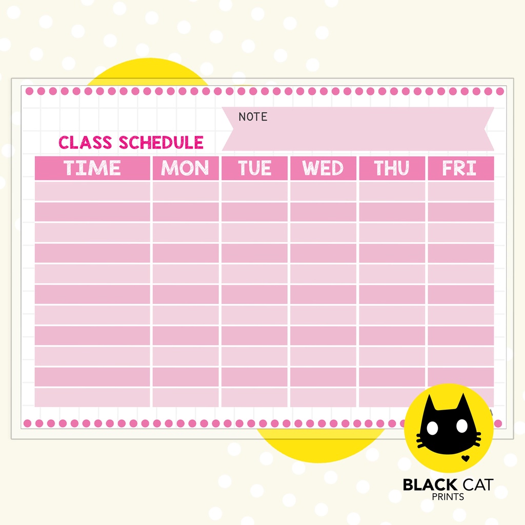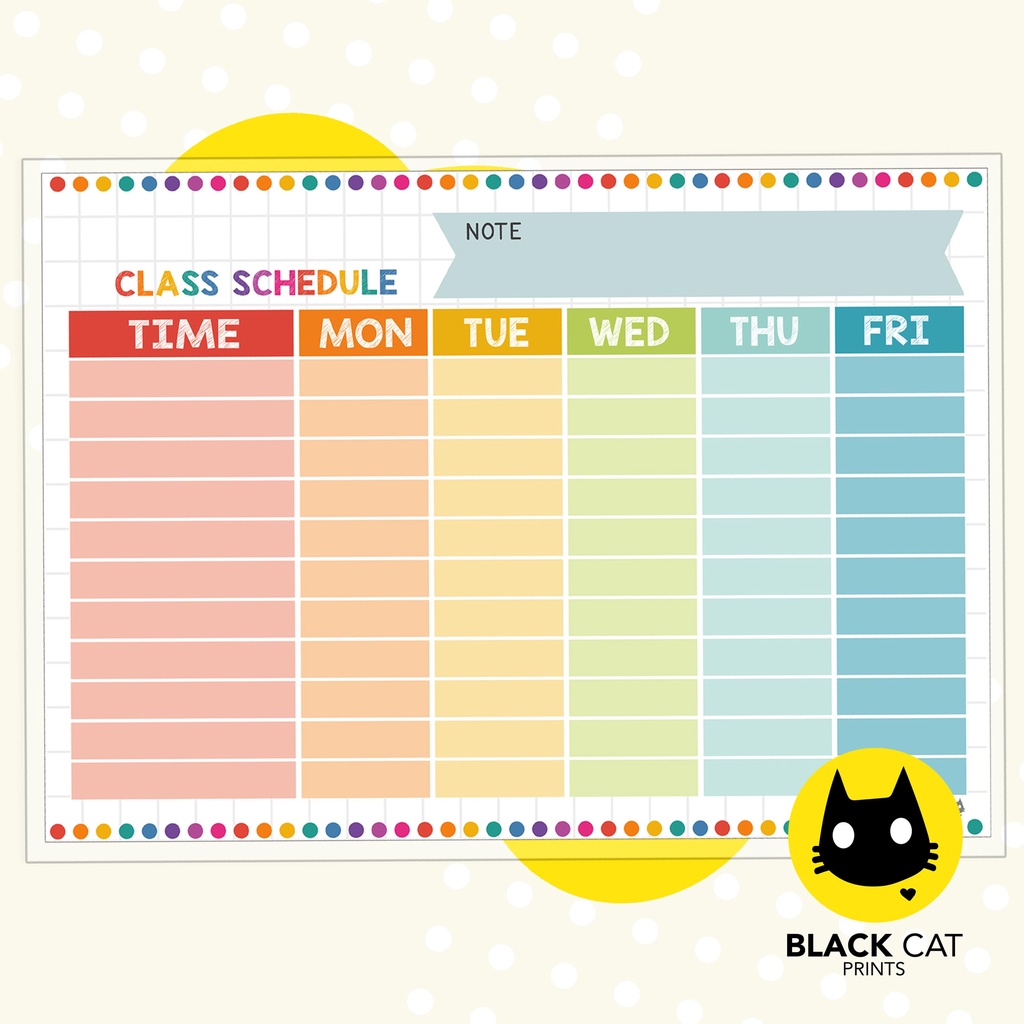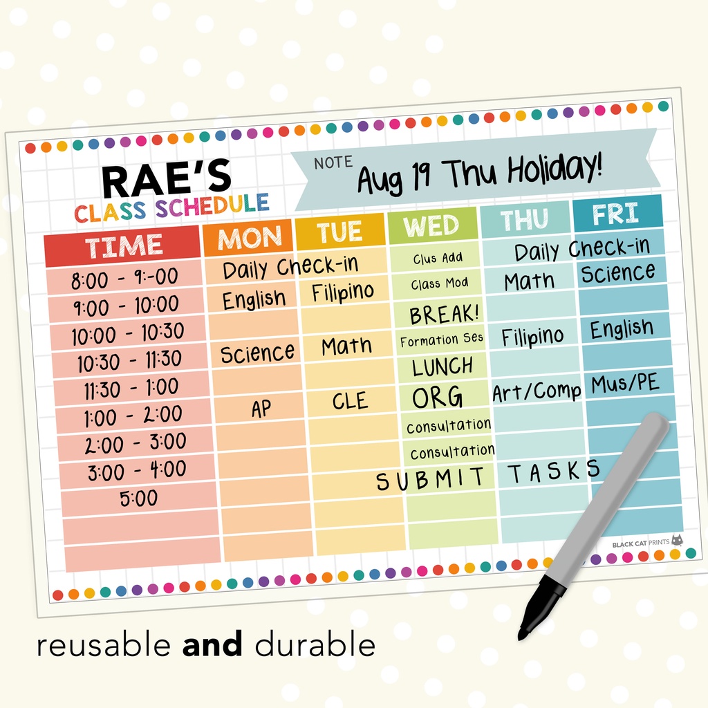 Class Schedule Sheets (Reusable / Personalized / High Quality Print / A4 Size / Laminated)