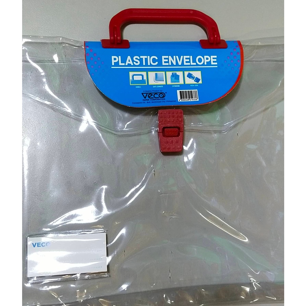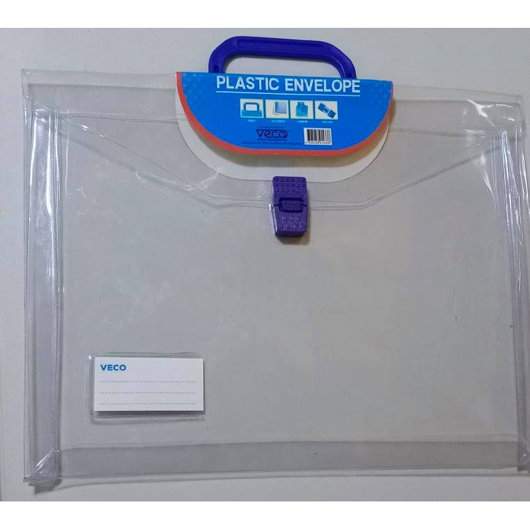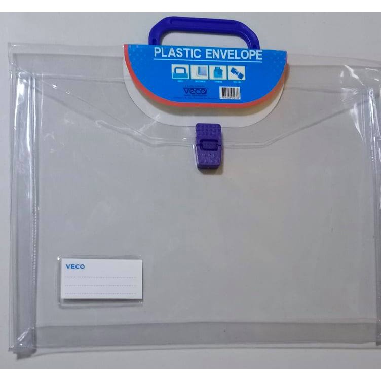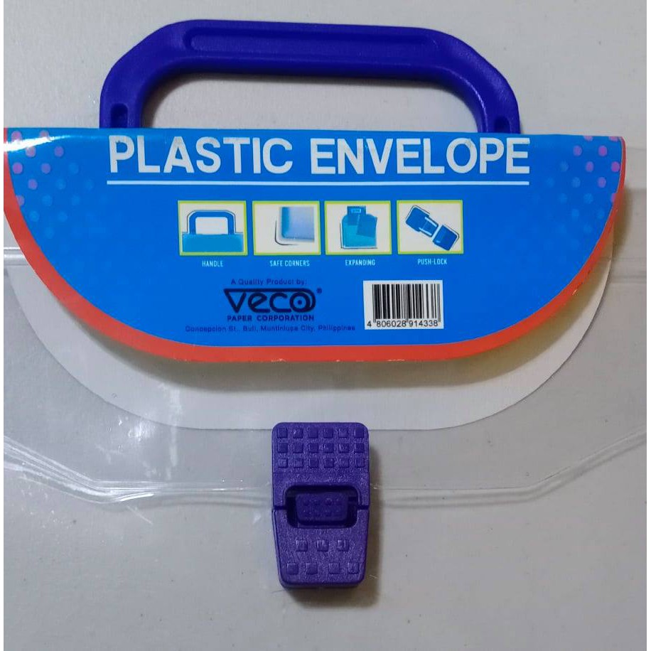 CLEAR LONG Expanding Plastic Envelope Pushlock Type with Handle, VECO Brand , RANDOM COLOR OF HANDLE