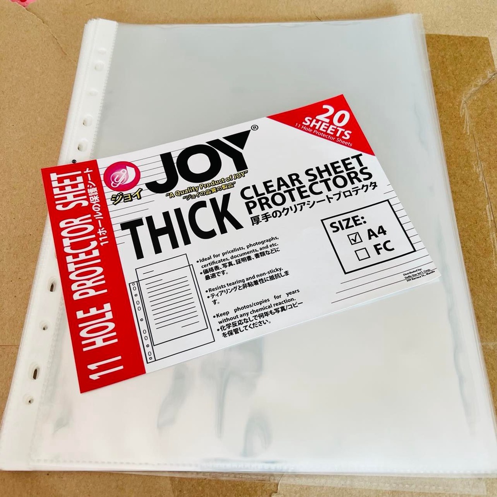 CLEAR SHEET PROTECTORS / JOY THICK 11 HOLE PROTECTOR SHEETS LONG/A4 20 SHEETS/PACK