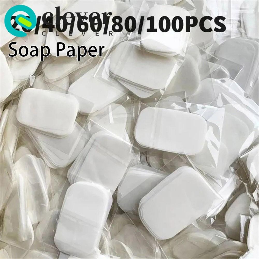 CLEVER 20/50/60/80/100pcs Soap Paper, Scented Bath Clean Hand Washing Slice, Portable Outdoor Travel Foaming Soap Tablets