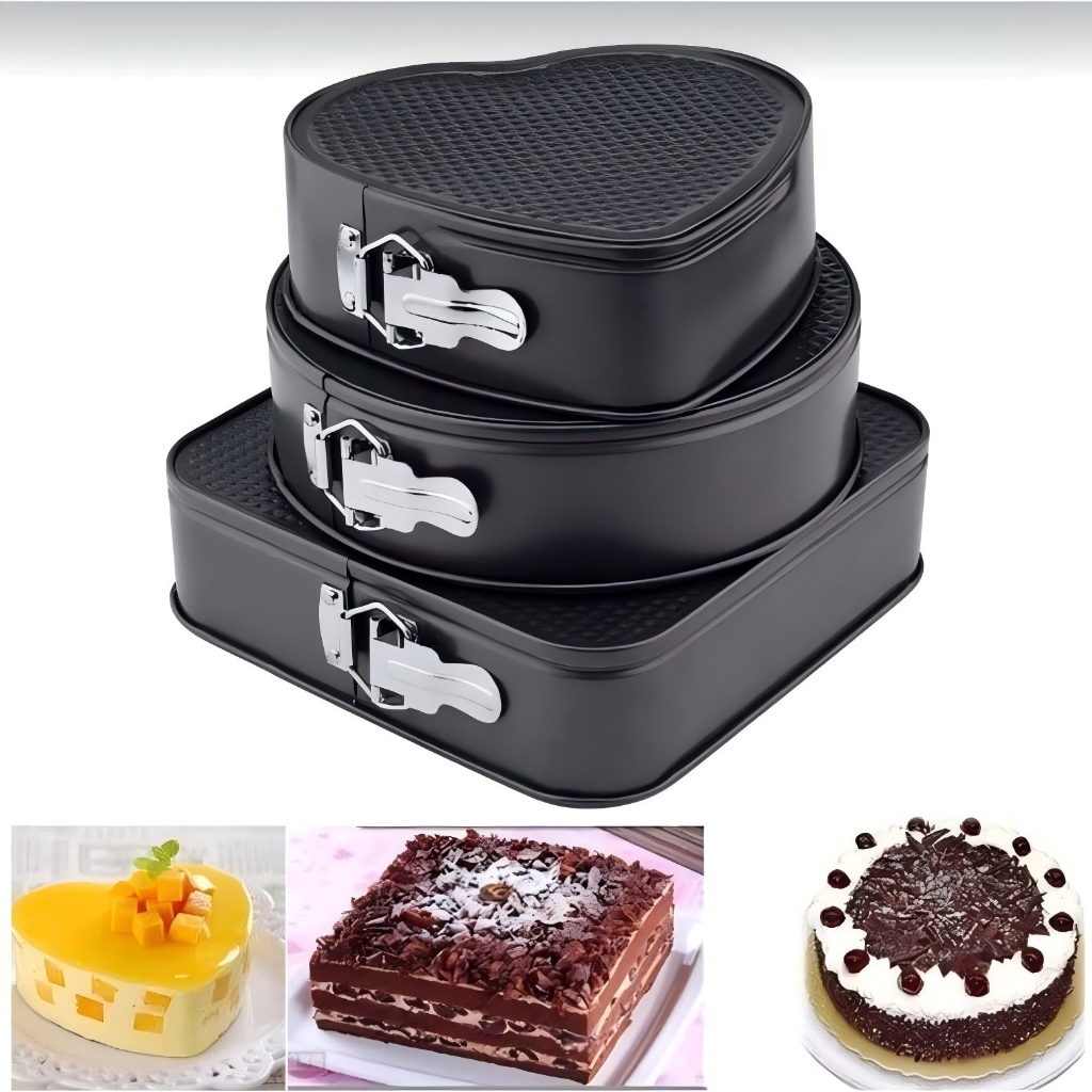 CLICK SHOPE 3Pcs/Set Nonstick Cake Mould Cake Pan Set 3 Layer Cake Springform Pan Removable Bottom Baking Pan