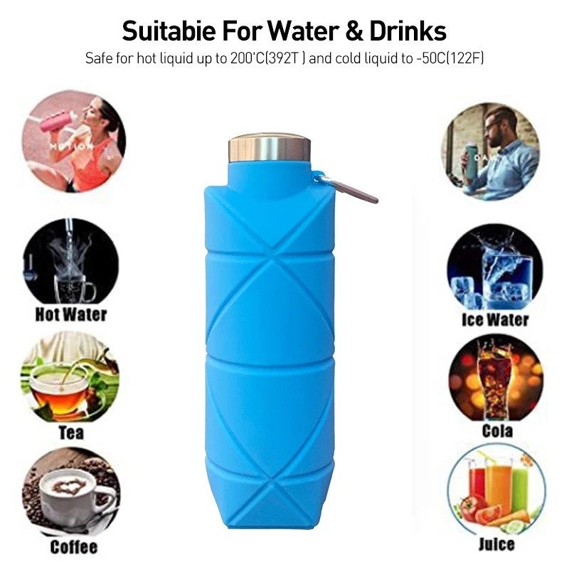CLICK SHOPE Collapsible Silicone Water Bottle Outdoor Sports Travel Foldable Portable Aquaflask
