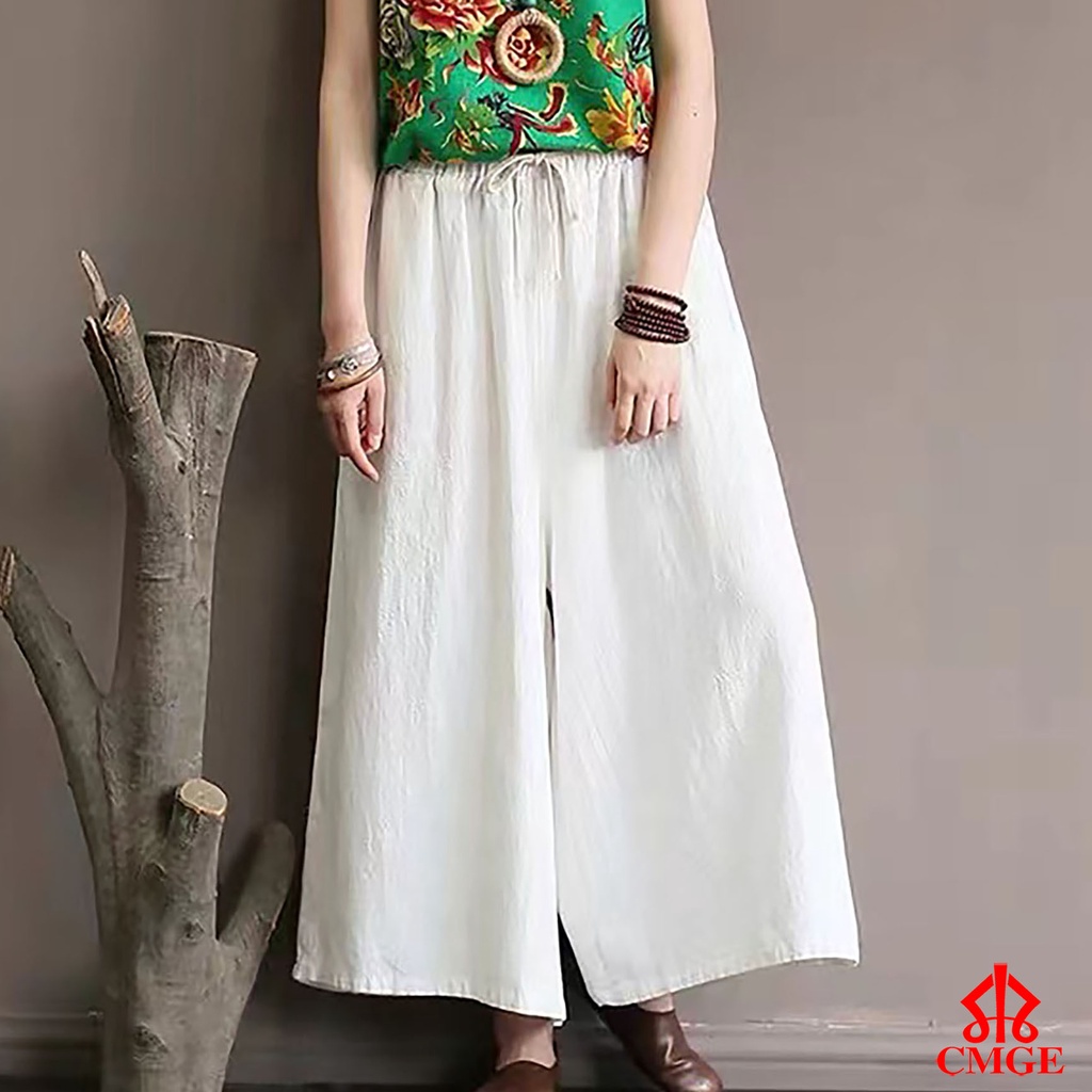 CMGE Square Pants For Women Summer Linen Loose Wide Leg Pants Plus Size High Waist Pants #877