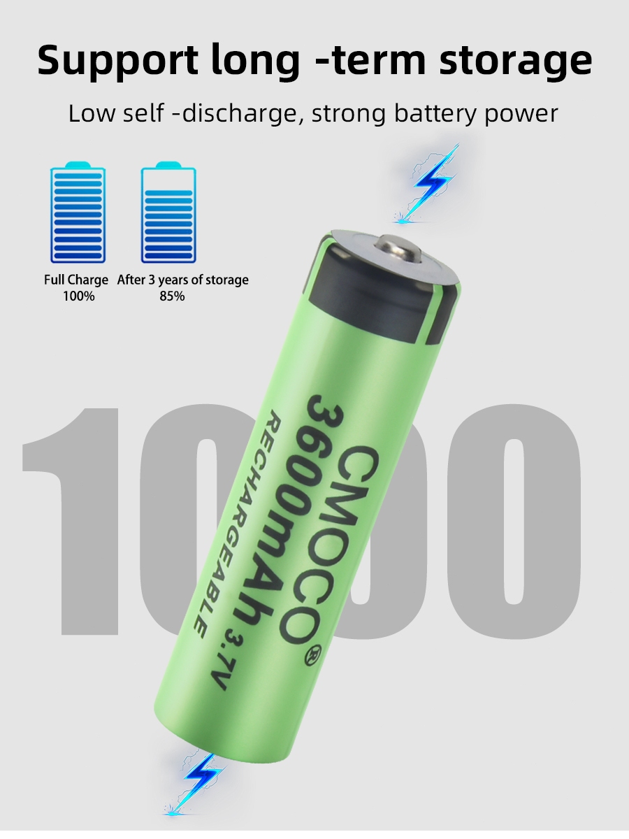 CMOCO 2pcs 18650 3600mAh Rechargeable Battery 3.7V Li-ion Battery For Flashlight