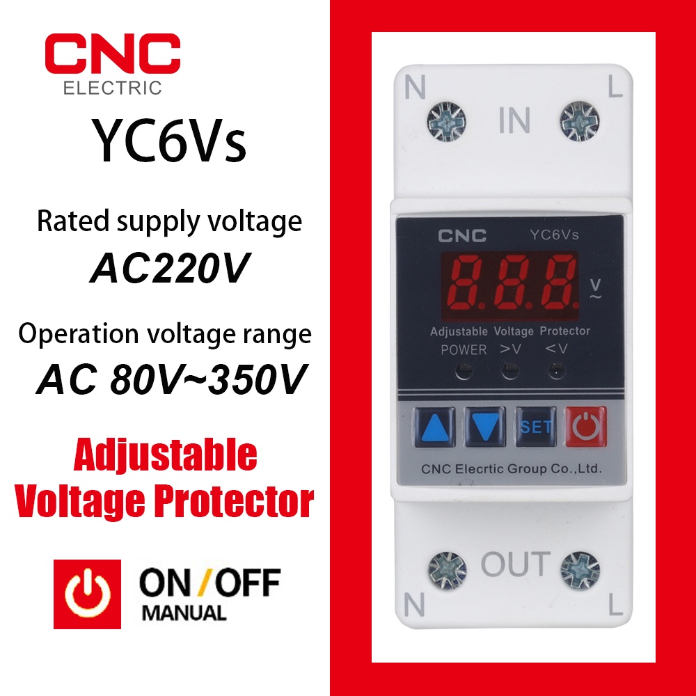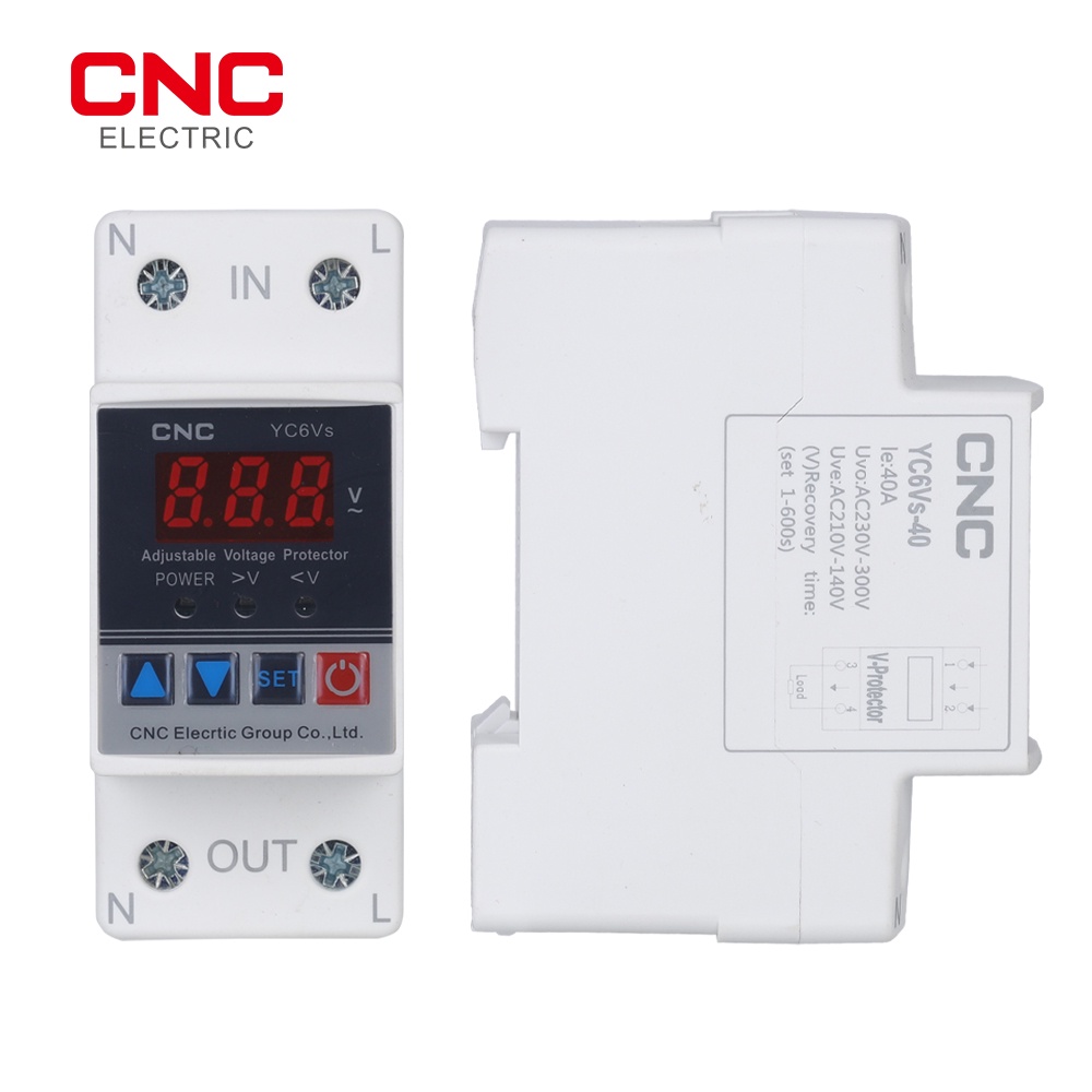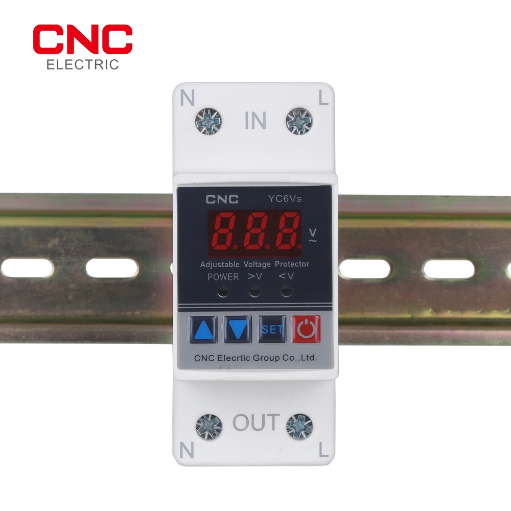 CNC Din rail 40A 63A ON/OFF Adjustable Over Under Voltage Proteciotn Device Automatic Reconnect Protector With Voltage Display