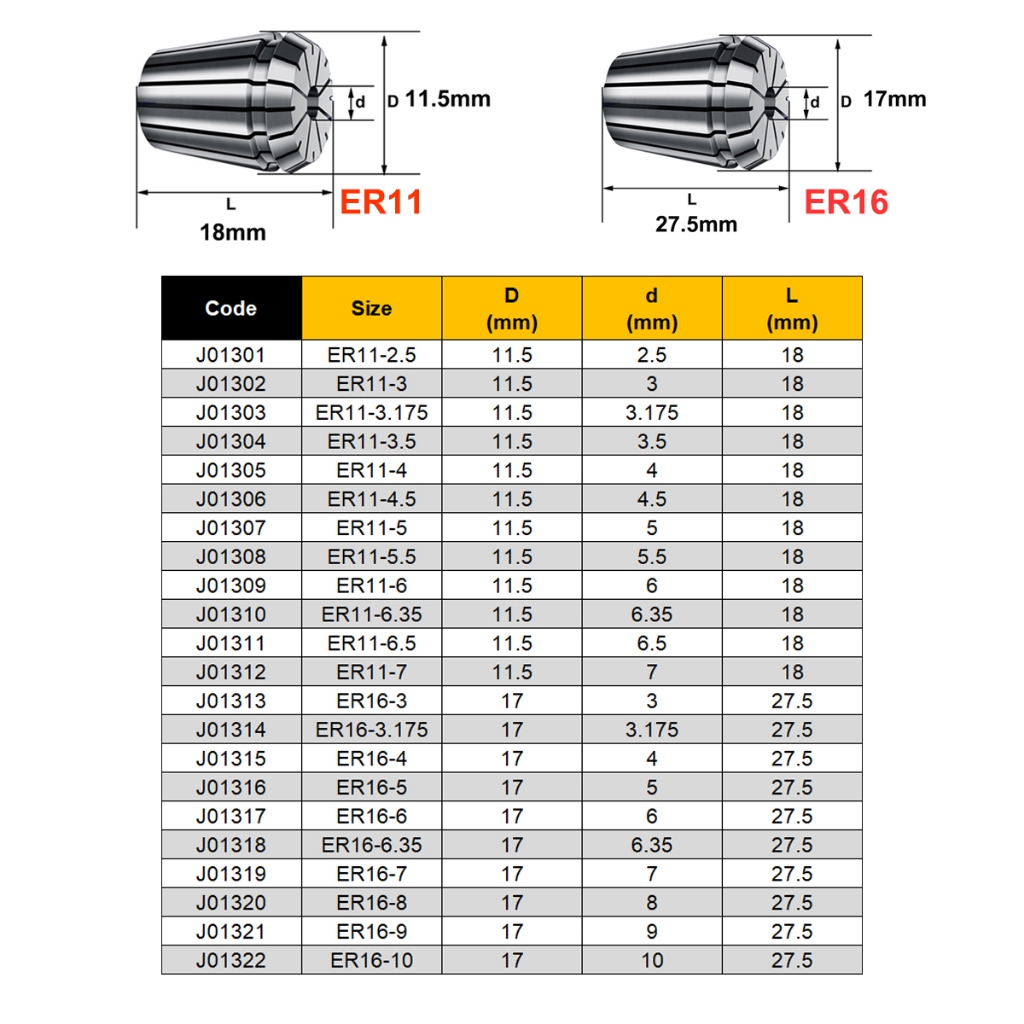 CNC ER11 ER16 Collet HRC40 3mm-10mm Elastic Collet Chuck Engraving Machine Parts CNC Lathe Elastic Collet