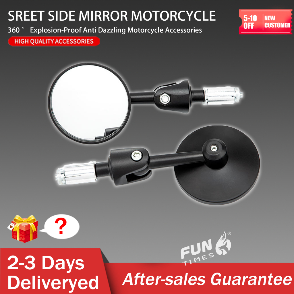 CNC Round Bar End Rear Mirror Side View Mirror 2PC SILVER Universal Adjustable