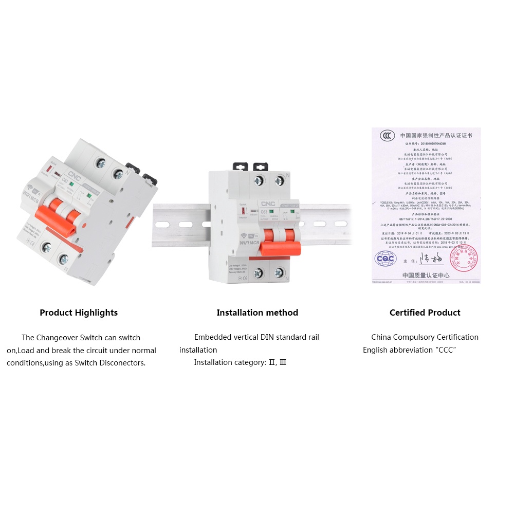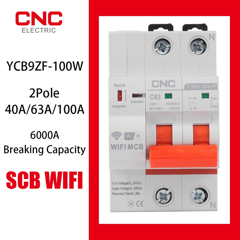 CNC YCB9ZF-100W 2P Smart Circuit Breaker WiFi Short Circuit Protection Timed Smart Reclosing Switch Remote Control