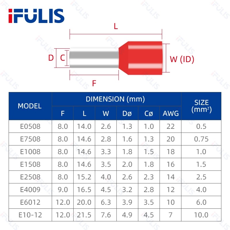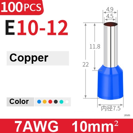 CNZG E6012 10-12 Electric Wire Connector Ferrule Terminal Cable End Insulated Assortment 100 Pcs/Bag
