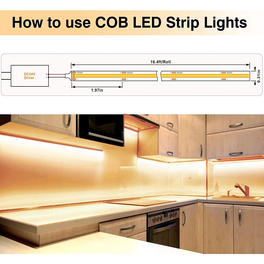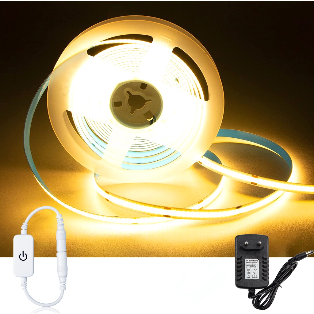 COB LED Light Bar DC 12V na may Touch Controller+2A Power Supply 5M LED Bendable Flexible Light Bar Dimmable Deformation Angkop para sa Stage, Home, Cabinet, Kitchen, DIY Lighting