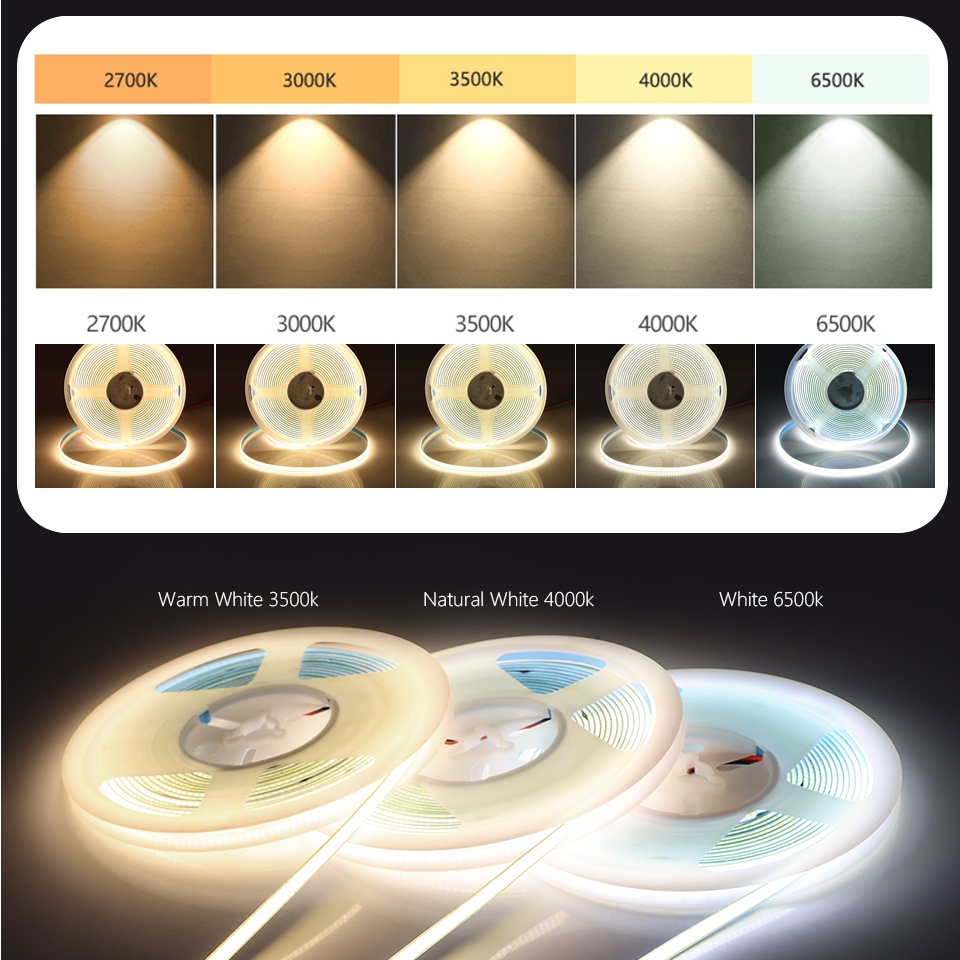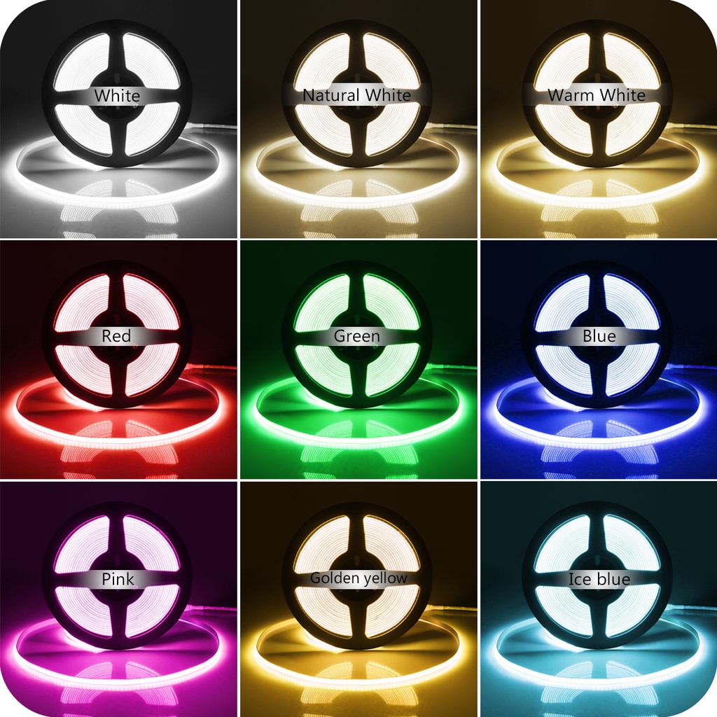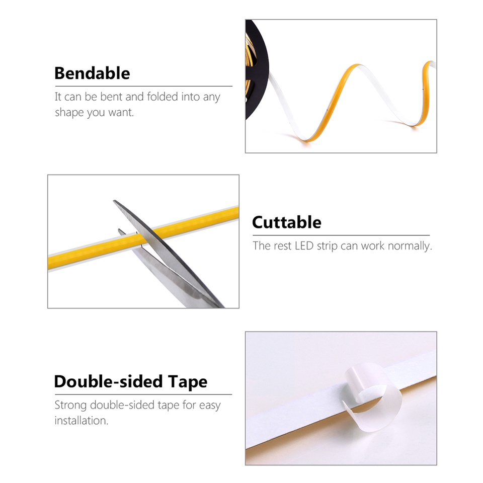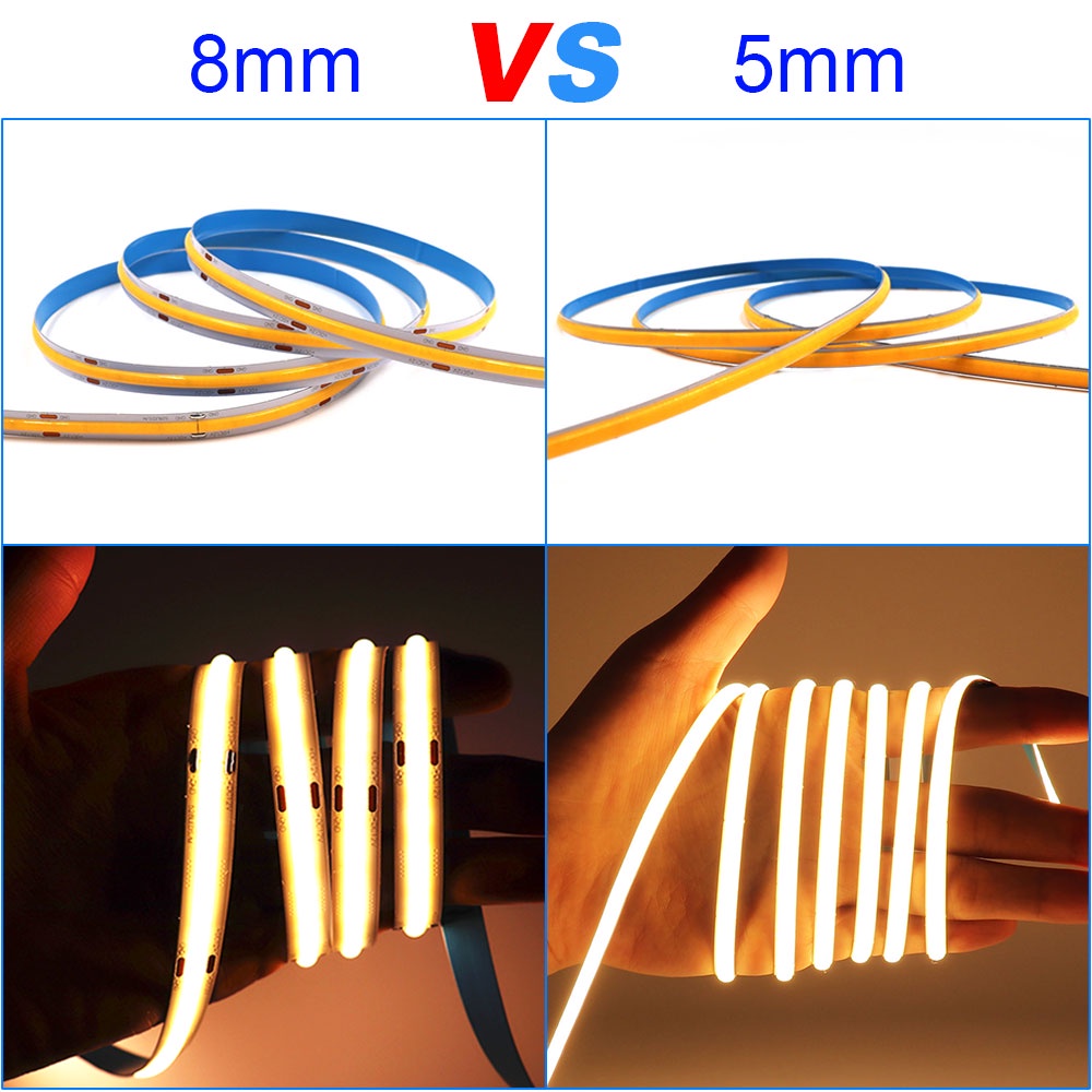 COB LED Strip Lights 320LED 12V 24V Flexible PCB 8mm Width Neon Tape Kitchen Cabinet Room Decoration