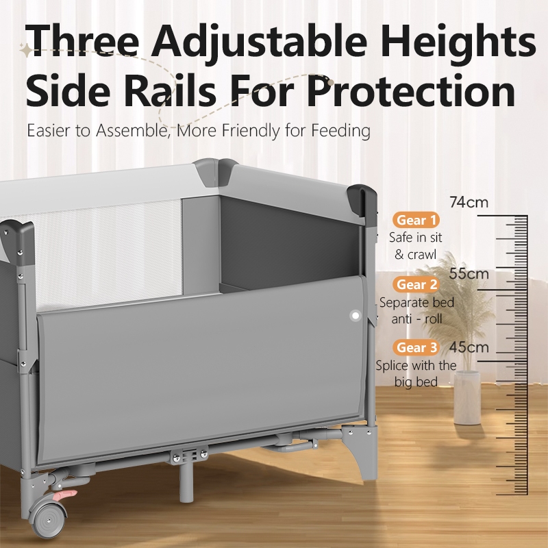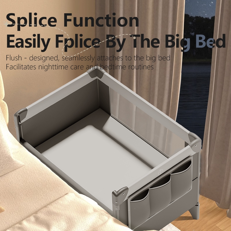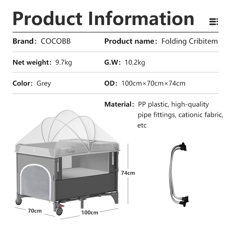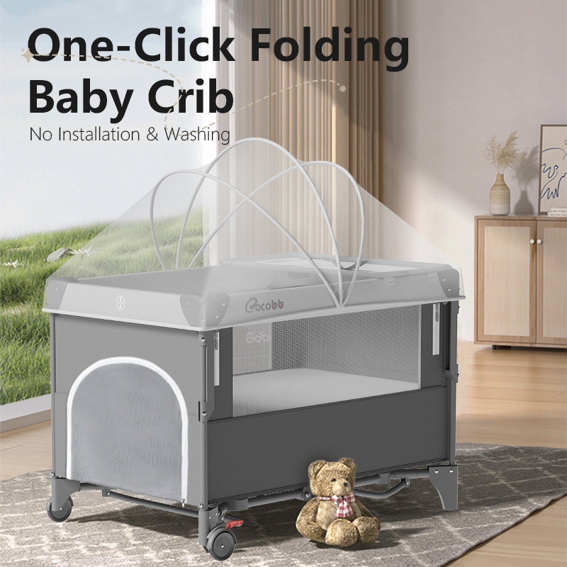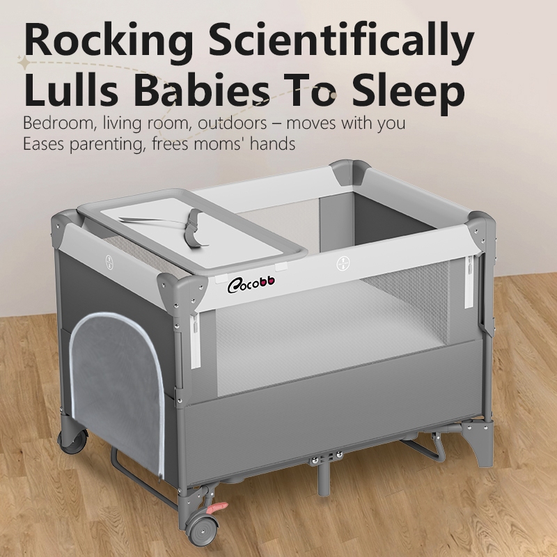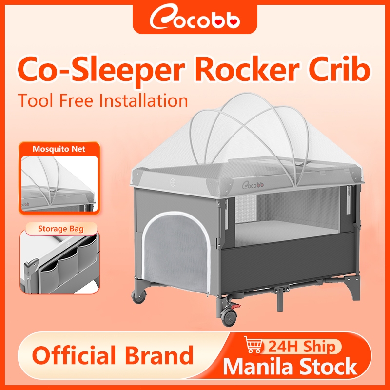 COCOBB Baby Crib Foldable With Mosquito Net Adjustable Stitching Big Bed Co-Sleeper Baby Rocking Bed