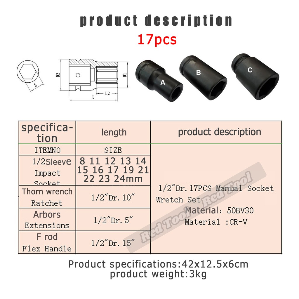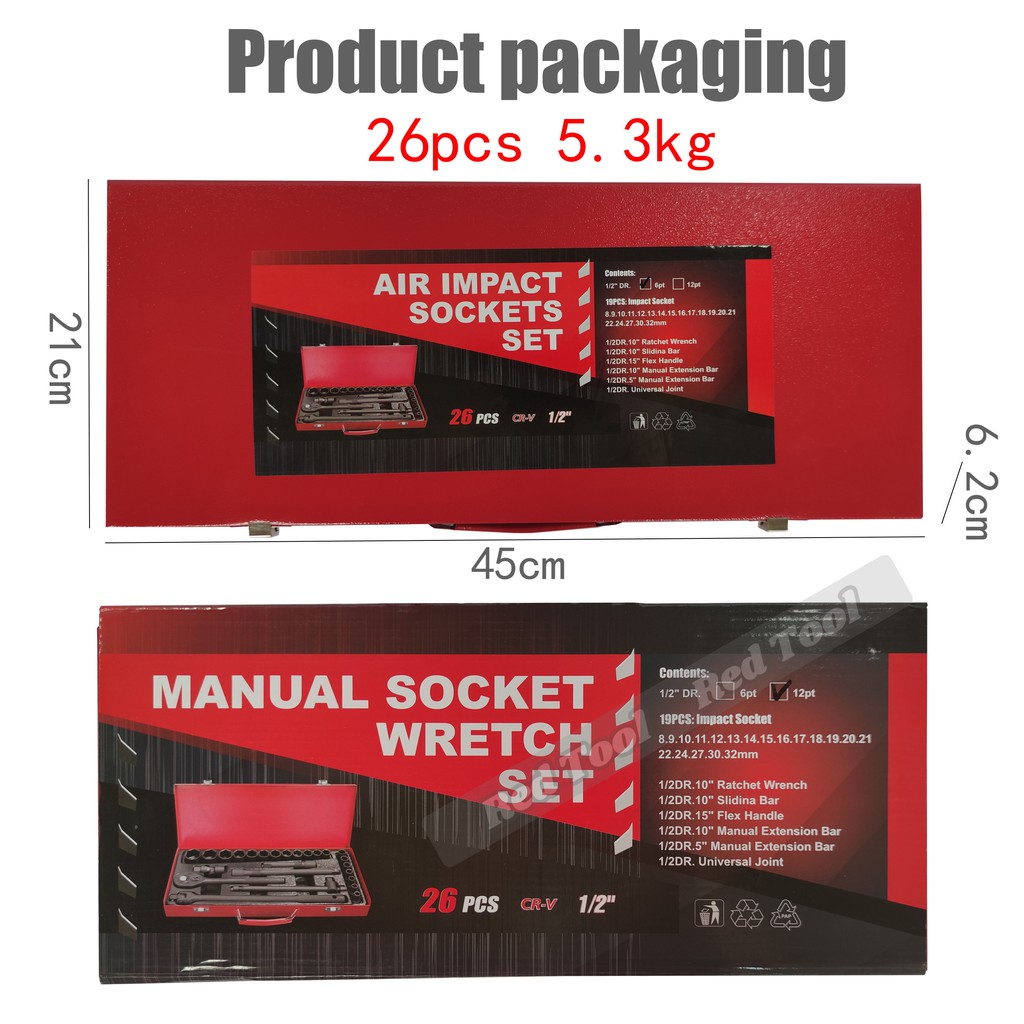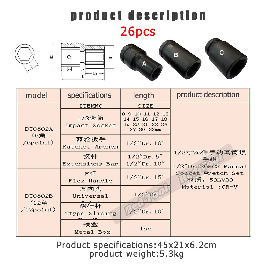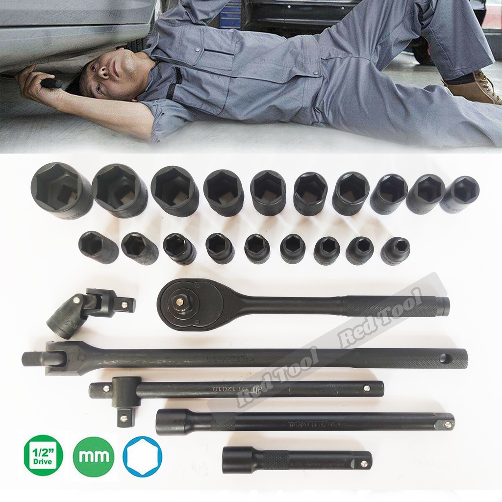 COD 1/2 inch drive metric impact socket kit, 26PCS metric size 8-32MM | Top chrome vanadium steel