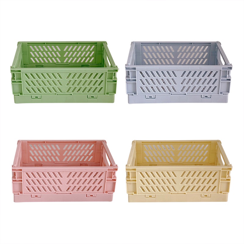 COD 1-Pack Mini Collapsible Plastic Baskets Durable Folding Plastic Storage Crate Colorful Small Stackable Storage Boxes for Shelf Bedroom Office Bathroom Drawer Organizer CRT