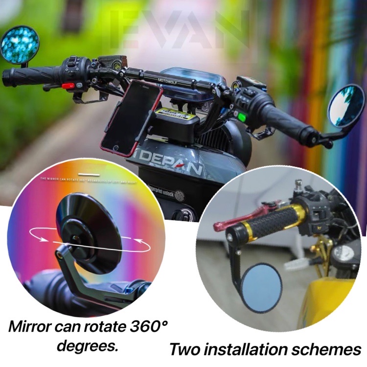 COD 1Pair Universal Round Bar End Rear Mirrors Side View Mirror CNC Alloy side mirror for motorcycle