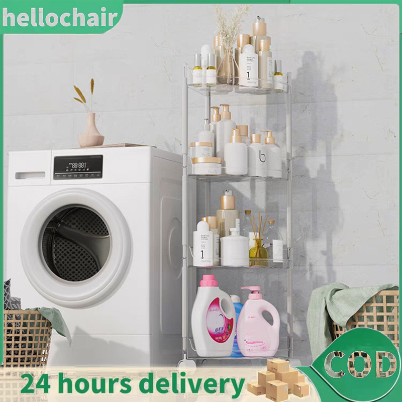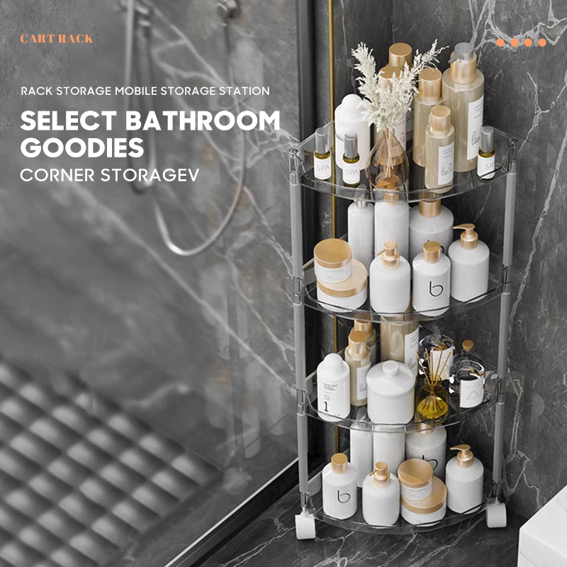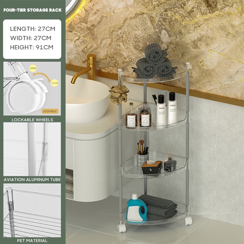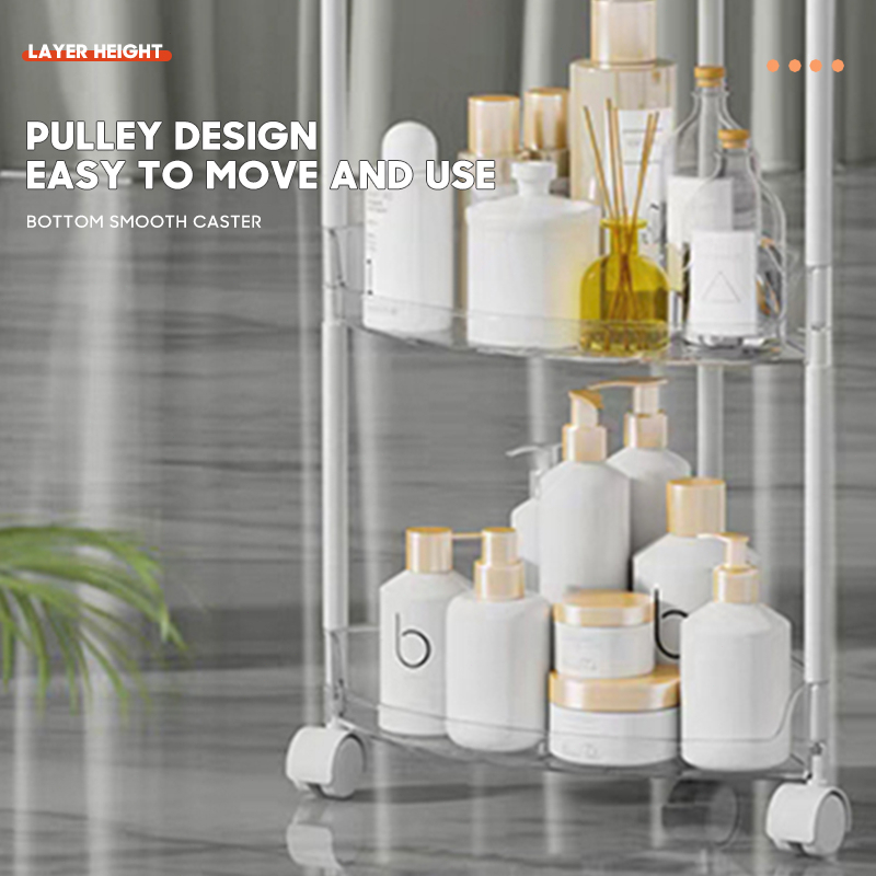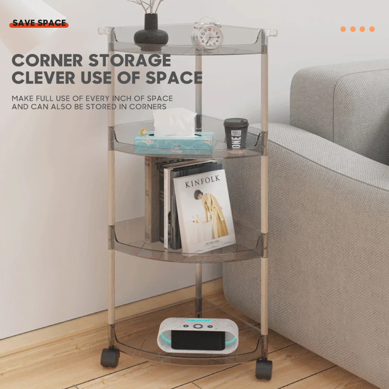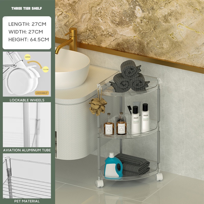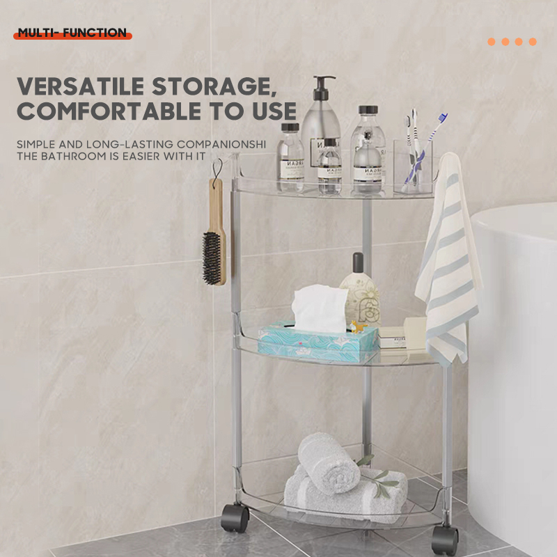 COD 2/3/4 Tiers Kitchen Triangle Utility Trolley Cart Shelf Storage Rack with Wheels Transparent