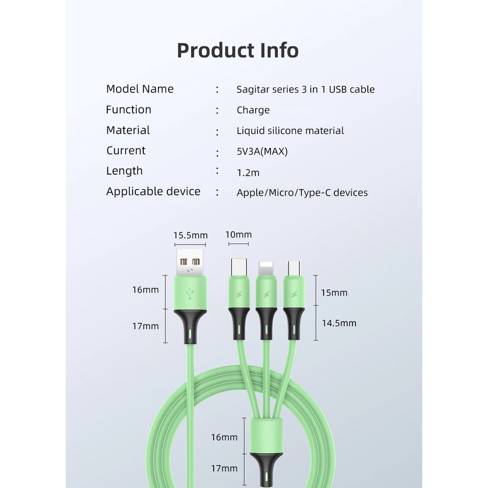 COD 3 In 1 USB Cable Fast Charging Micro USB Type C Cable Fast Charge Data Cord Charge Multi Port