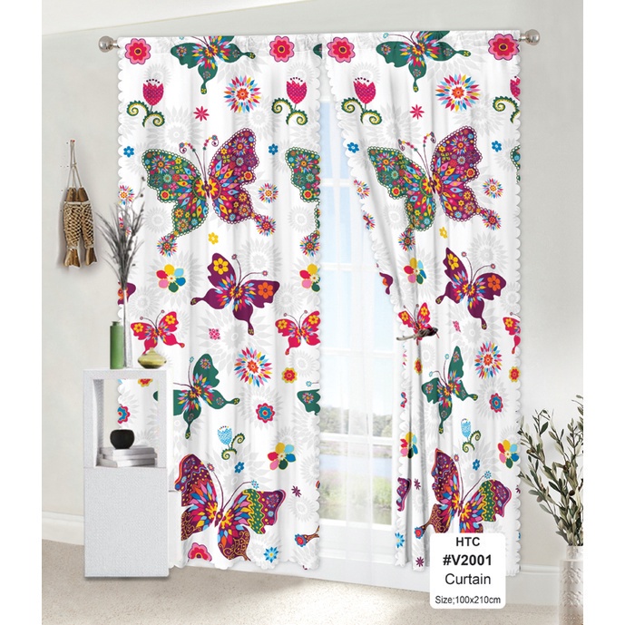 COD Curtain Sky Blue Butterfly Design Curtains for Window Door Room Decor 210*100cm 1PC Kurtina