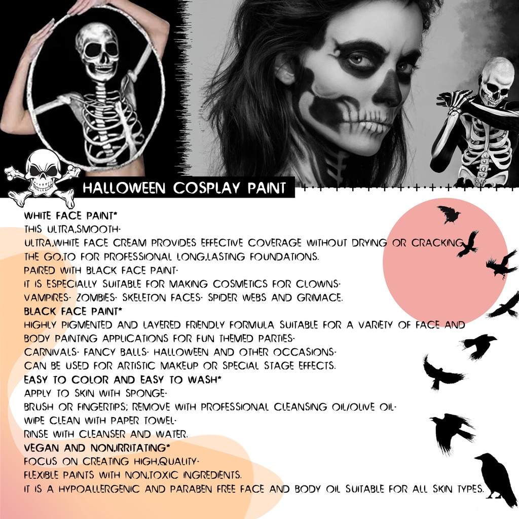 COD Eelhoe Face Paint Set Halloween Black And White Body Paint Body Paint Vampire Zombie Skeleton Face Makeup Paint