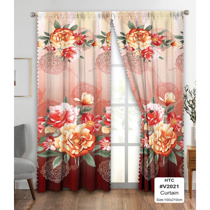 COD Elegant Red Rose Curtain Sale Cotton Kurtina Home Decorations for Window Door Room 210*100cm 1PC