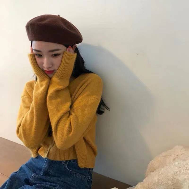 COD Girl Classic Solid Color Winter French Style Beret hat