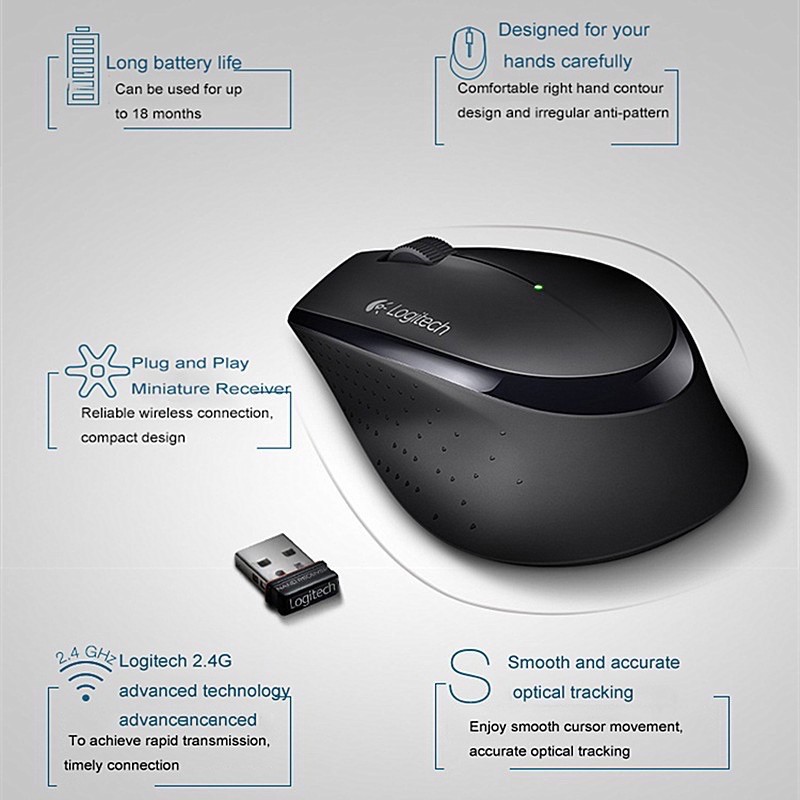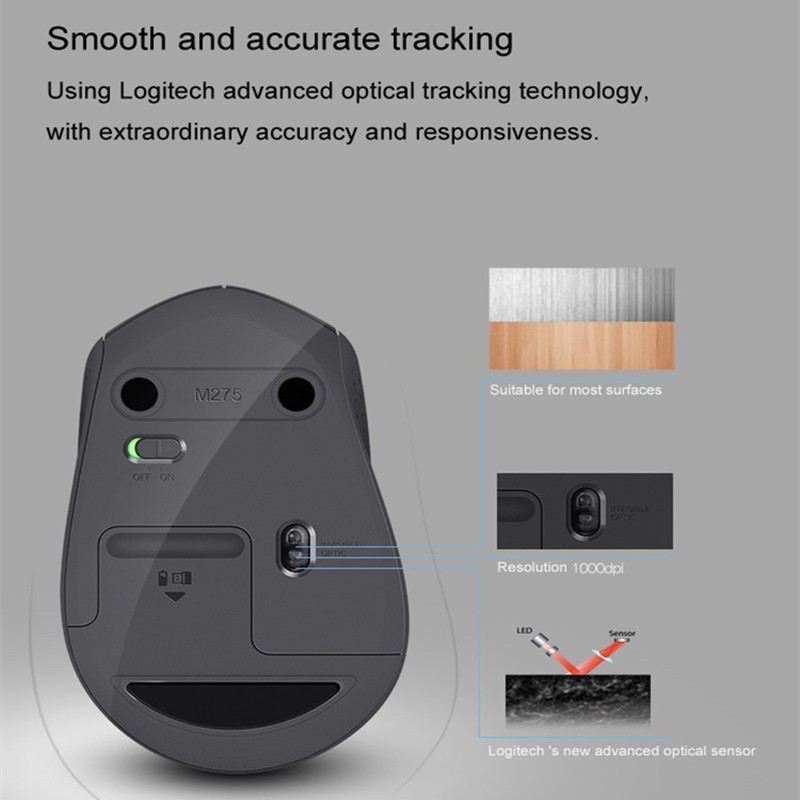 COD Logitech M275 2.4G Wireless Mouse Optical Tracking Ergonomic Mice USB Receiver Black