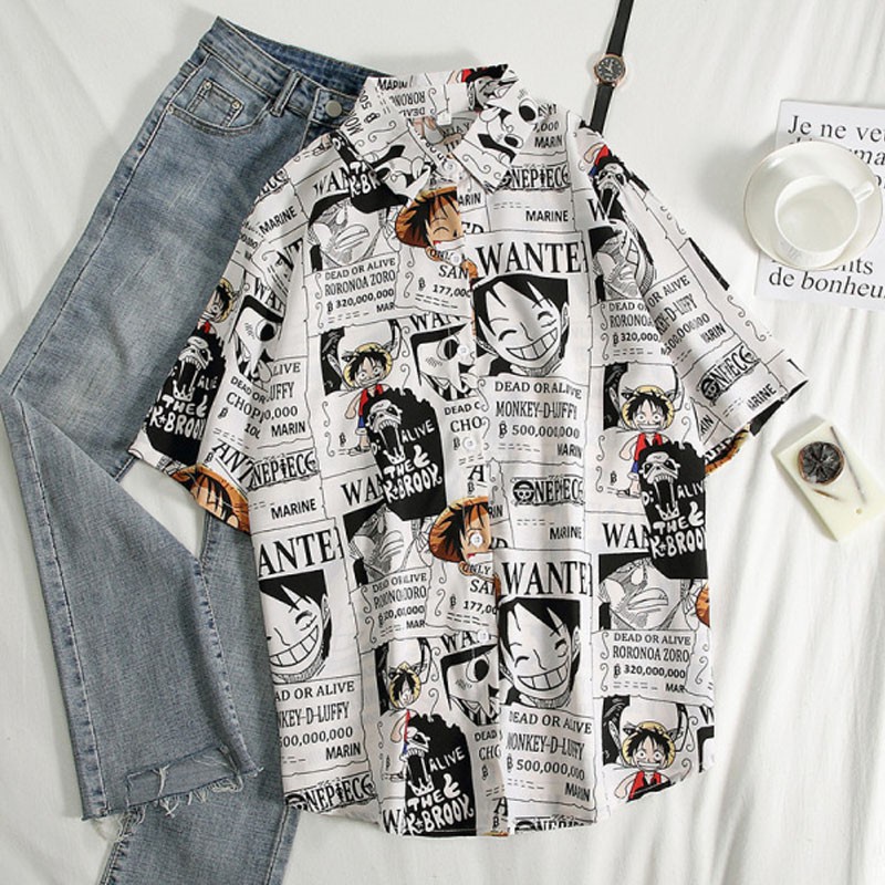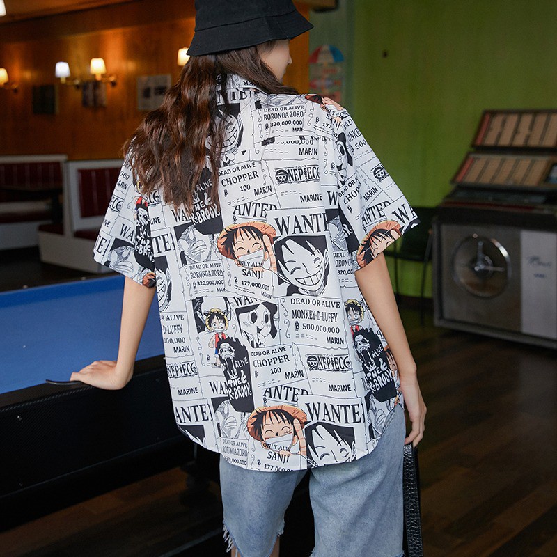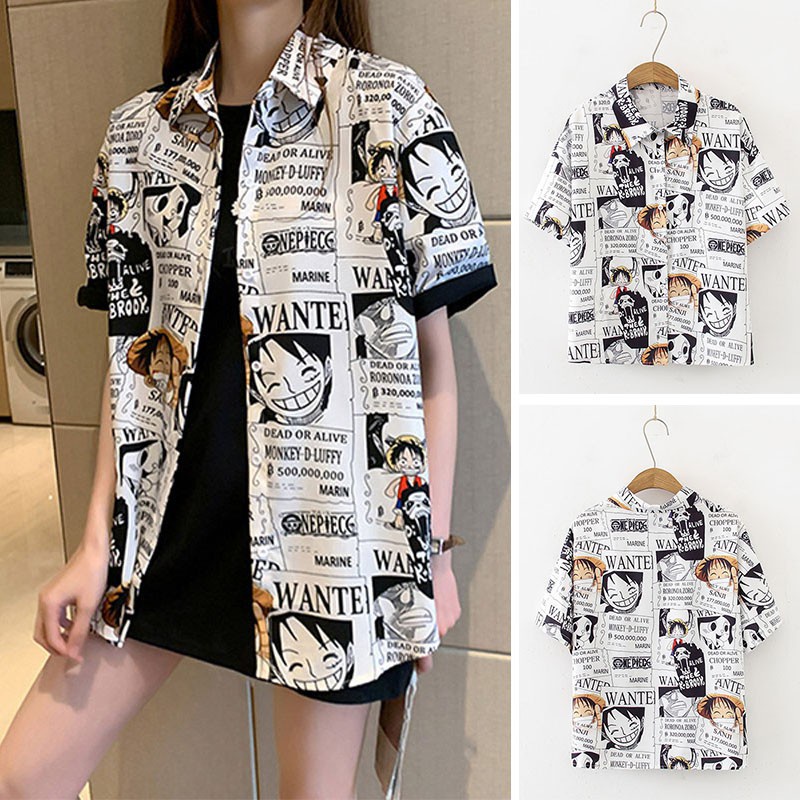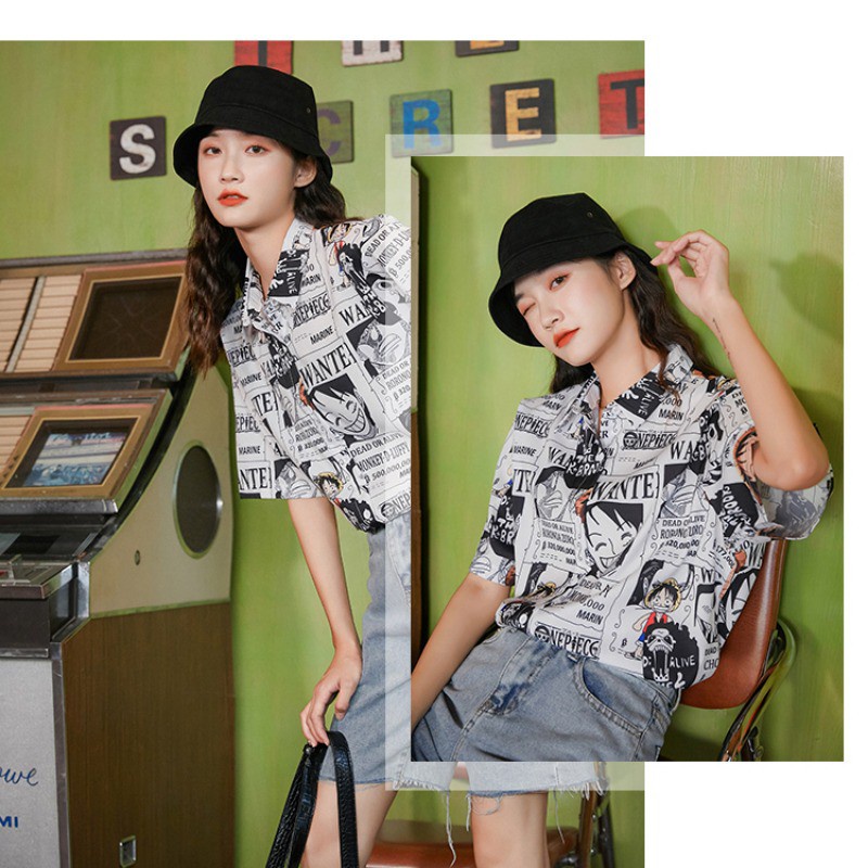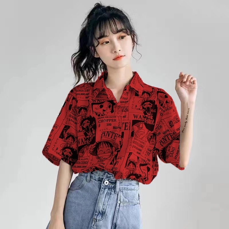 COD One-piece Red Pirate King Print Fashion Short Sleeve Shirt Fashion 2 Colors Women's Button Up Cardigan