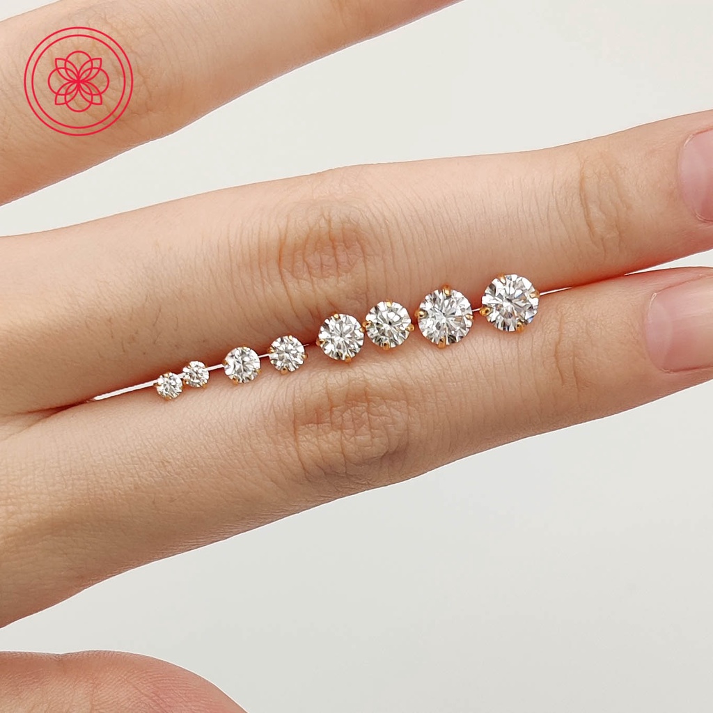 COD PAWNABLE 18k SAUDI GOLD Earrings Russian Synthetic Diamond Stud Earrings w/ Gold Pakaw