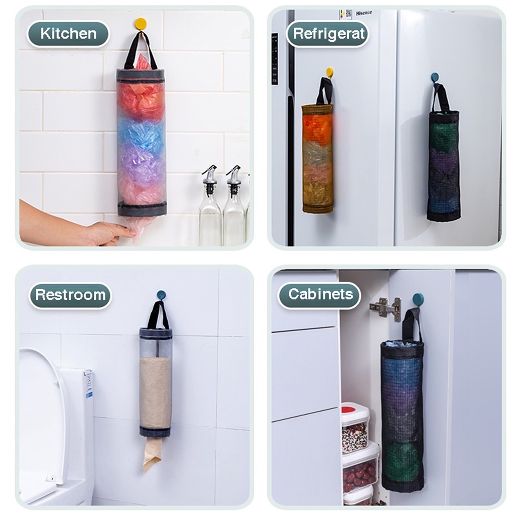 COD Plastic Garbage Bag Organizer Storage Box Trash Bag Holder Dispenser Mesh Kitchen Home Organizer