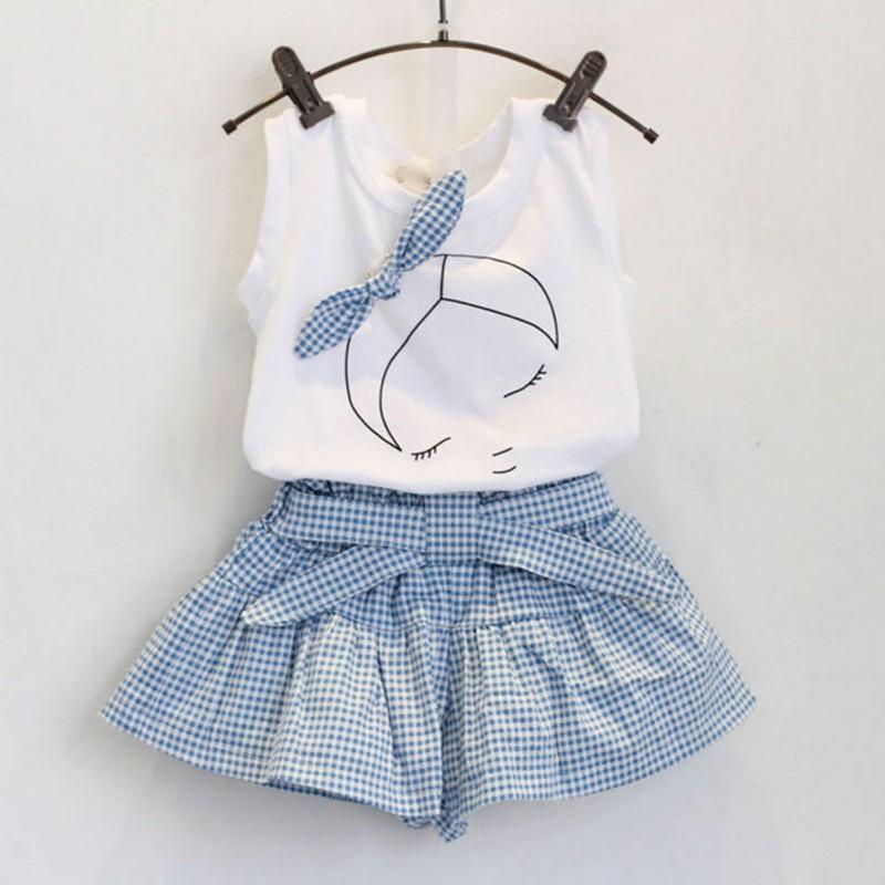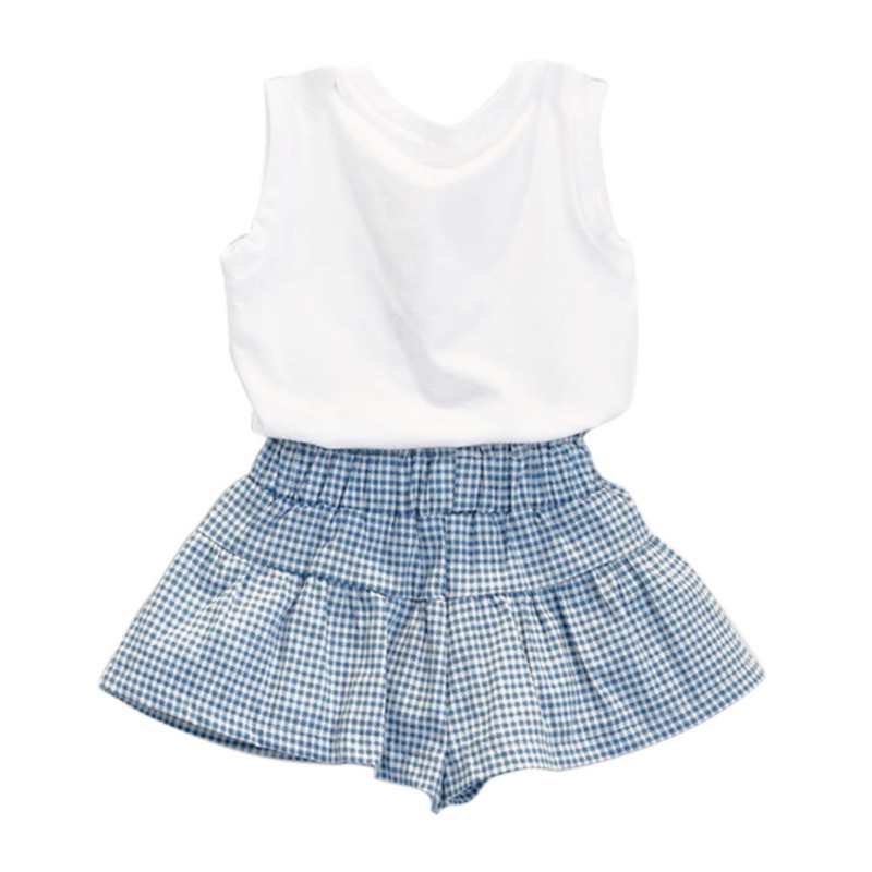 COD Ready Stock Kids Girls T Shirt and Plaid Pants 2pcs Set Kids Terno Girls Terno Baby Girls Clothes Set