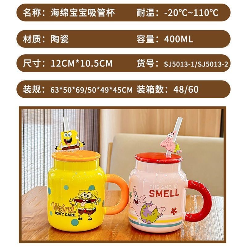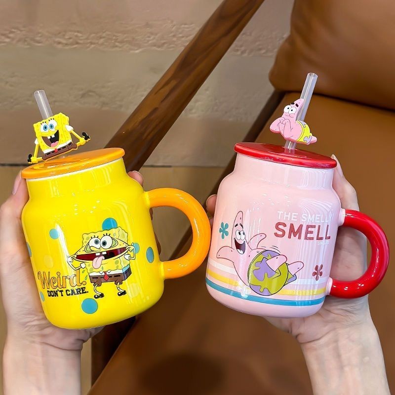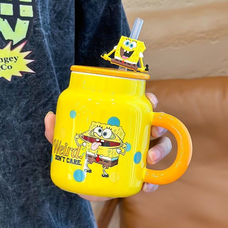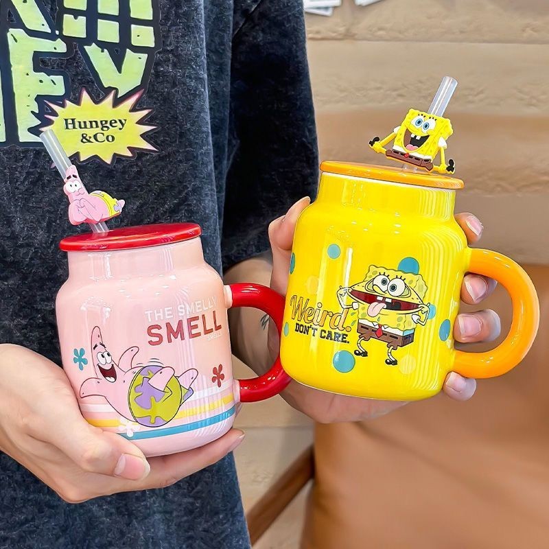 COD SpongeBob SquarePants Ceramic Mug Cute High-Looking Cartoon Mug With Cover Office Birthday Gif