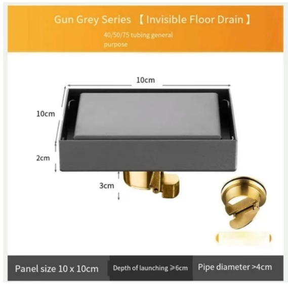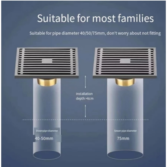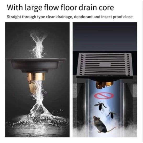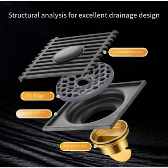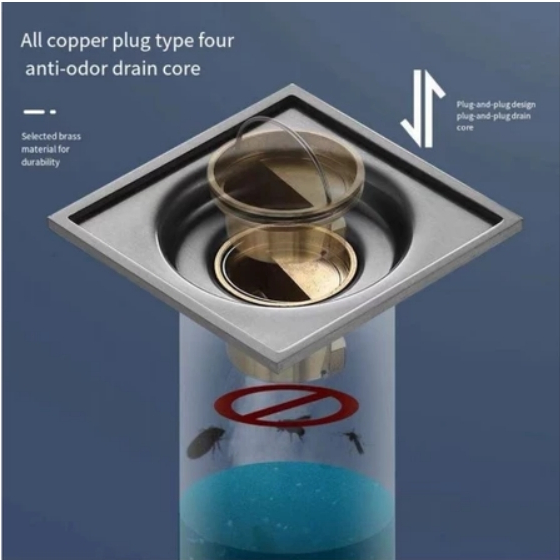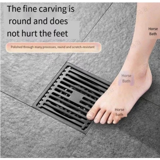COD Square Floor Drains SUS304 Stainless Steel Shower Drainer Bathroom Waste Drain Deodorant Black/