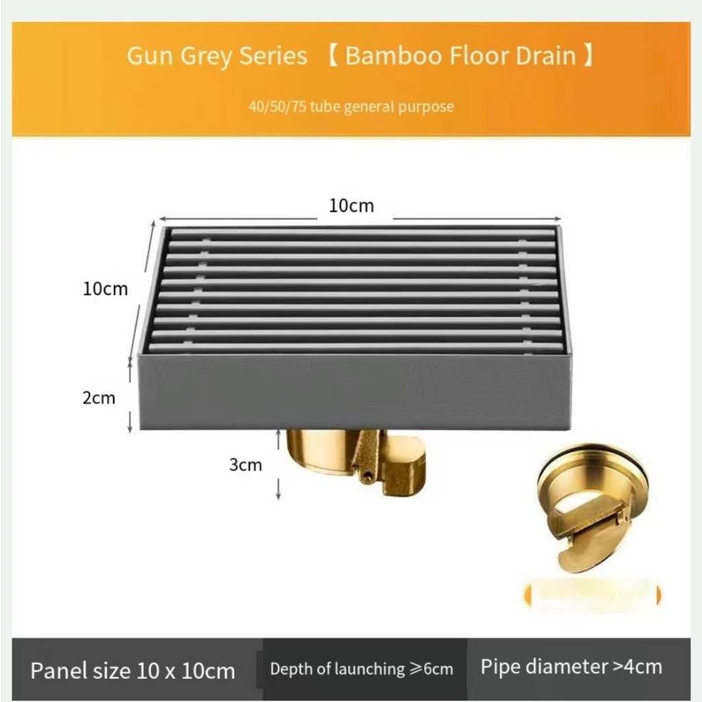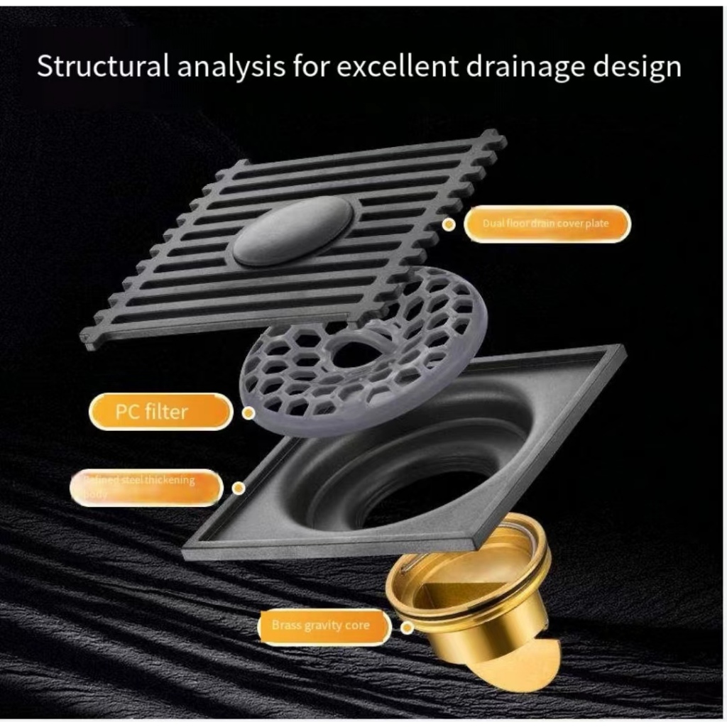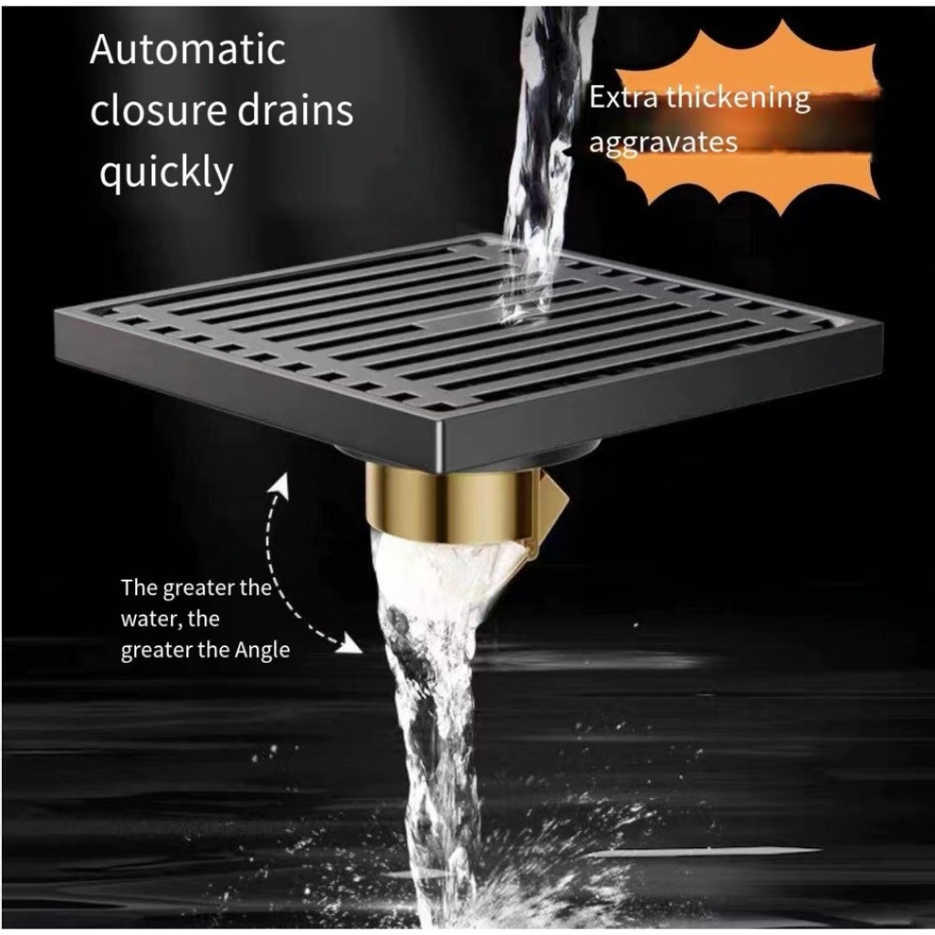 COD Square Floor DrainsSUS304 Stainless Steel Shower Drainer Bathroom Waste Drain Deodorant gun gray