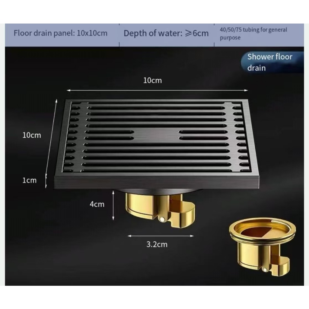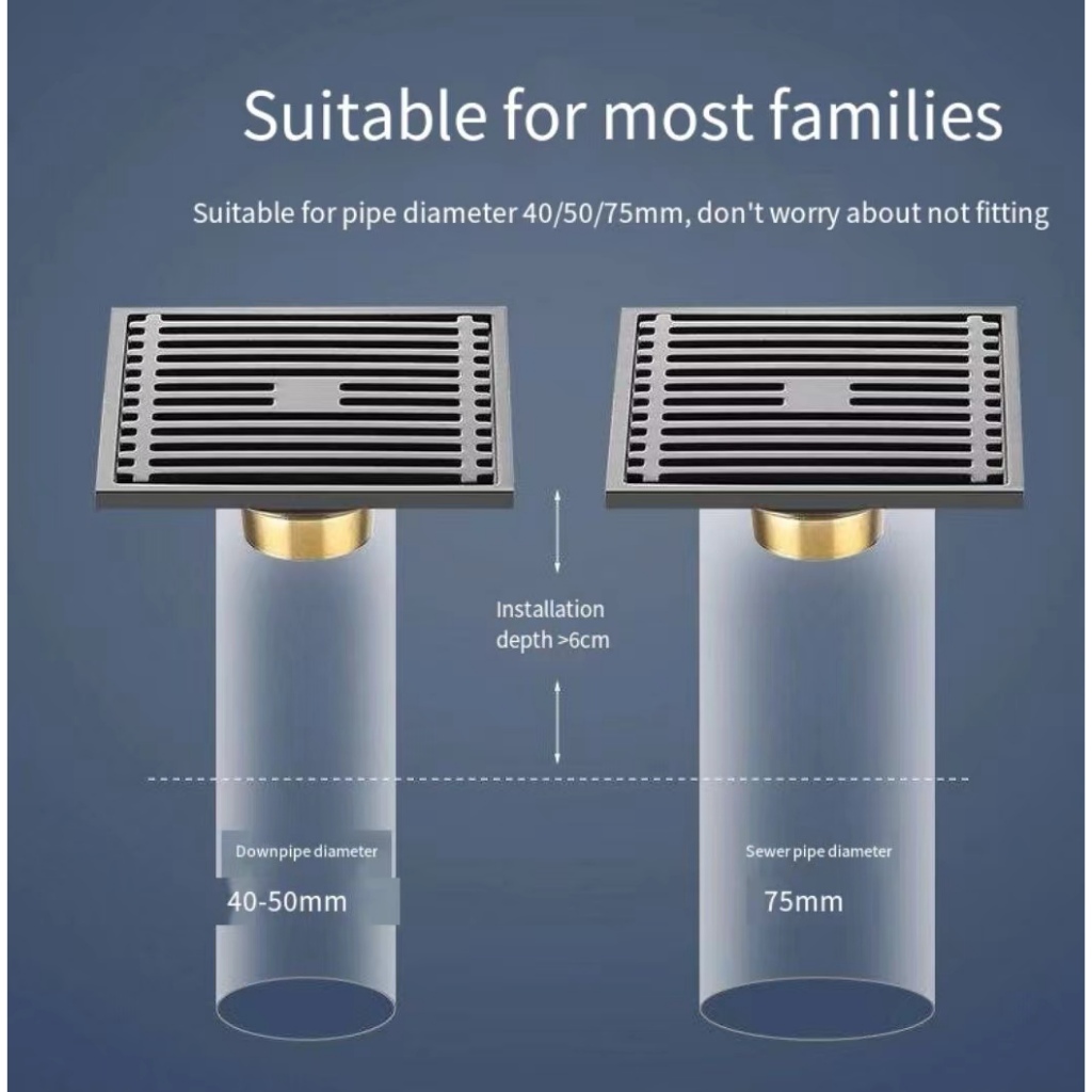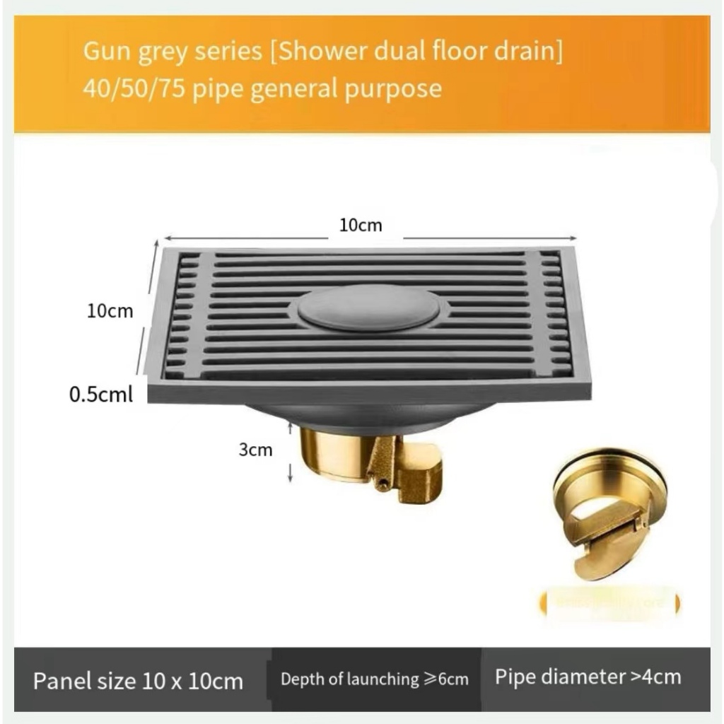 COD Square Floor DrainsSUS304 Stainless Steel Shower Drainer Bathroom Waste Drain Deodorant gun gray