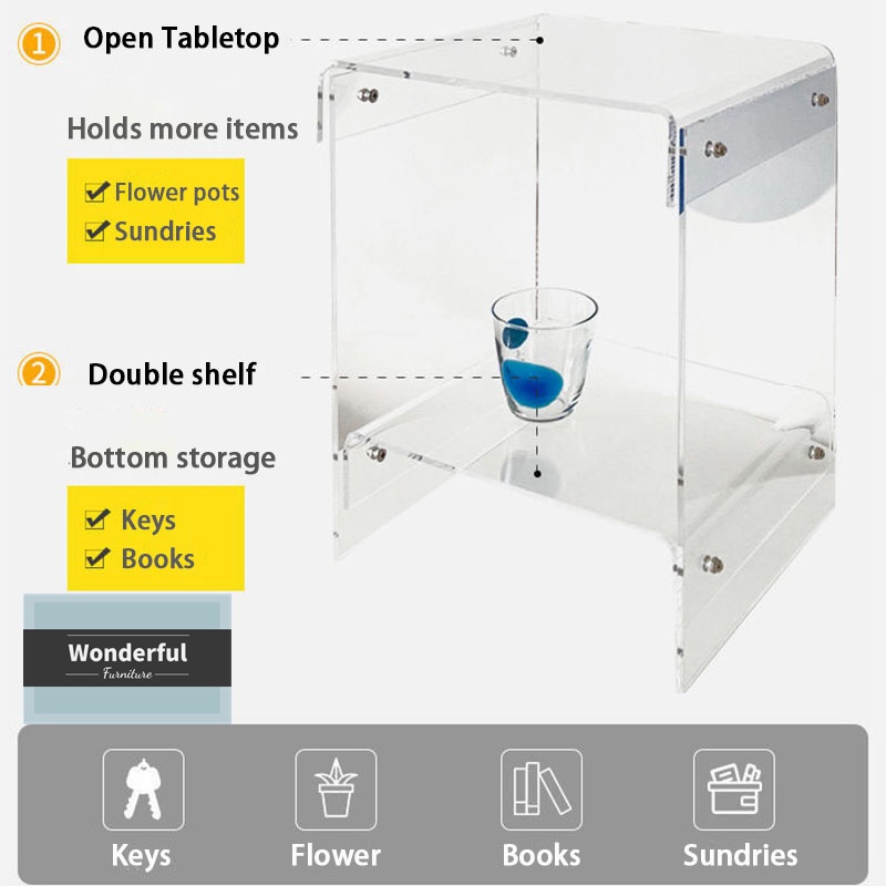 COD Transparent Acrylic Table Simple Transparent Bedside Table Creative Storage Coffee Table