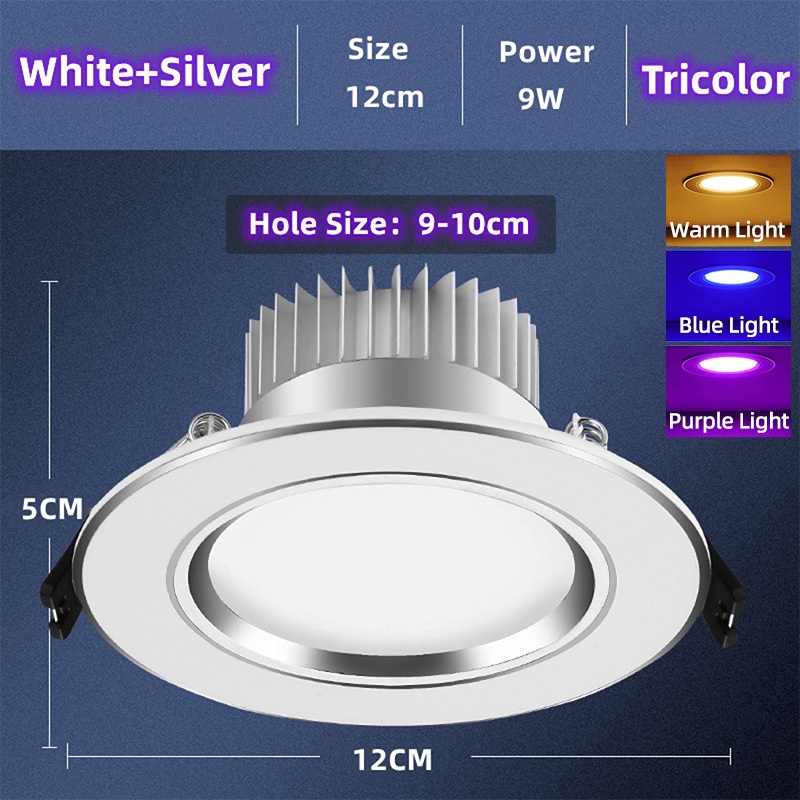 COD Tri color LED tube light embedded light panel 5W/7W/9W/12W 220V ceiling light round needle light