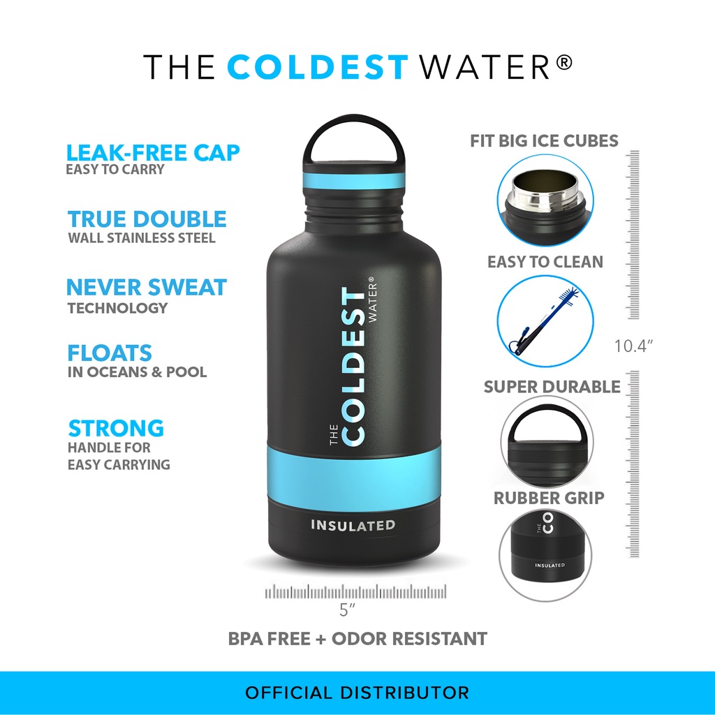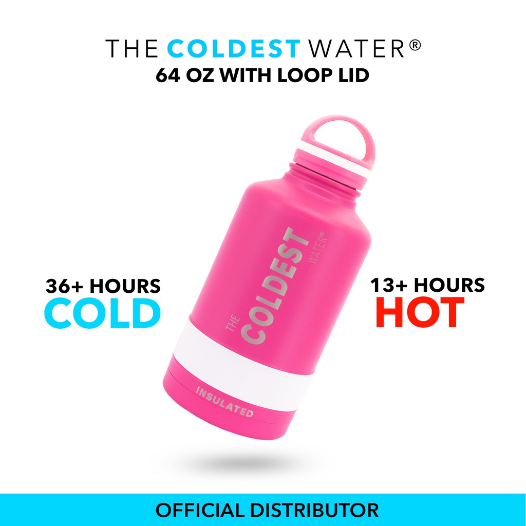 COLDEST Water Bottle 64 Oz (2 Liter) with Loop Lid Wide Mouth Thermos Hot and Cold Insulated Bottle