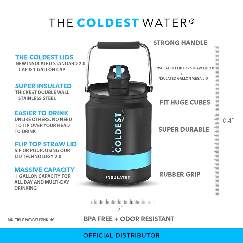 COLDEST Water Bottle Half Gallon (2L) Straw Lid Wide Mouth Thermos Hot and Cold Insulated Water Jug
