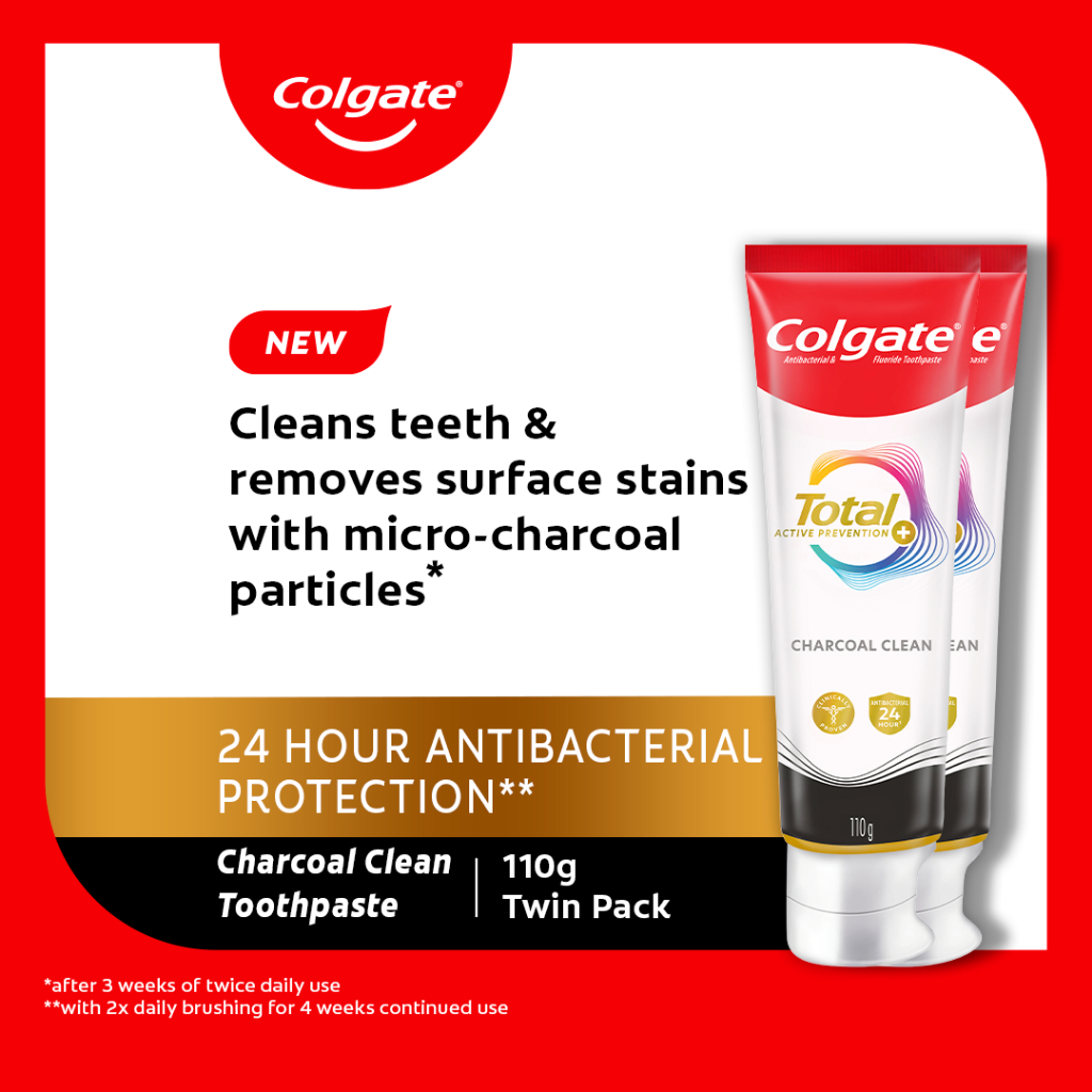 COLGATE Total Charcoal Deep Clean Whole Mouth Health Toothpaste 110g Twin Pack