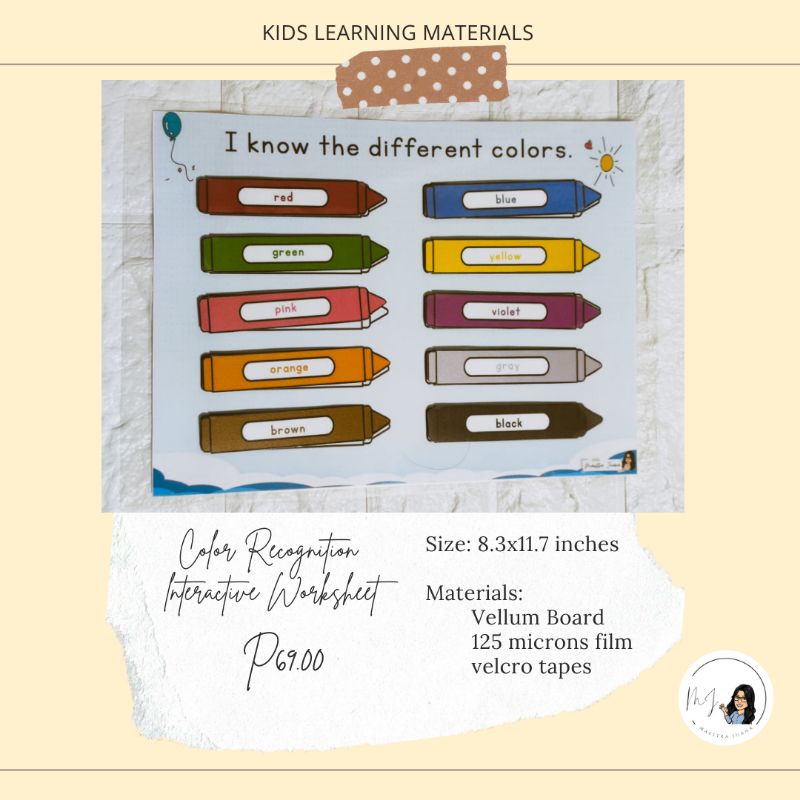COLOR MATCHING LAMINATED INTERACTIVE WORKSHEET