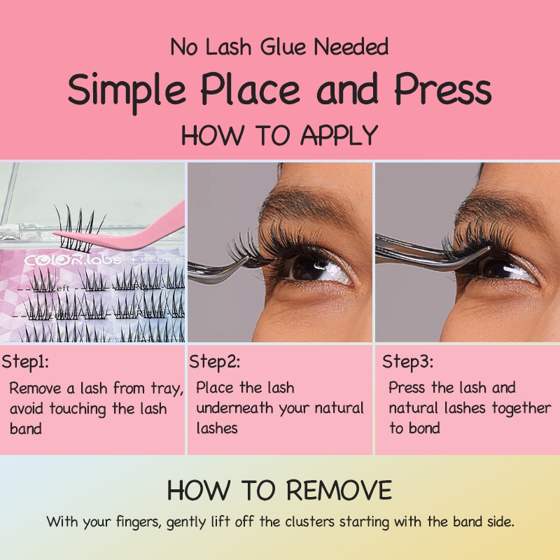 COLOR.Labs Self Adhesive Eyelashes 84pcs K-Pop Style Eyelash Extensions Self Stick Eyelash Pre Glued Eyelash Clusters Tweezers Included No Glue Needed