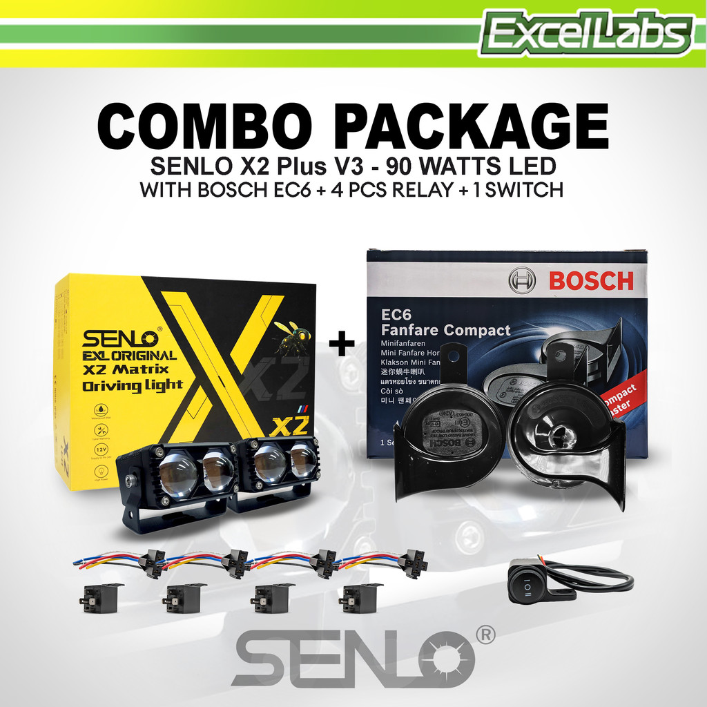 COMBO PACKAGE - ORIGINAL SENLO X2+ MATRIX DRIVING LIGHT V3 + BOSCH EC6 Horn + Switch (FREE 4 PCS REL