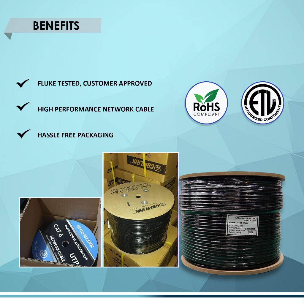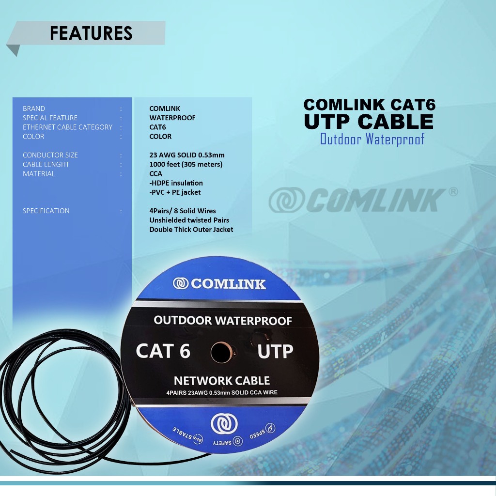 COMLINK CAT 6 UTP CABLE Outdoor Waterproof, 4 PAIRS 23 AWG, SOLID CCA wire