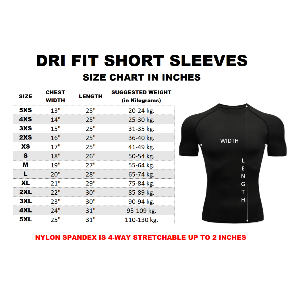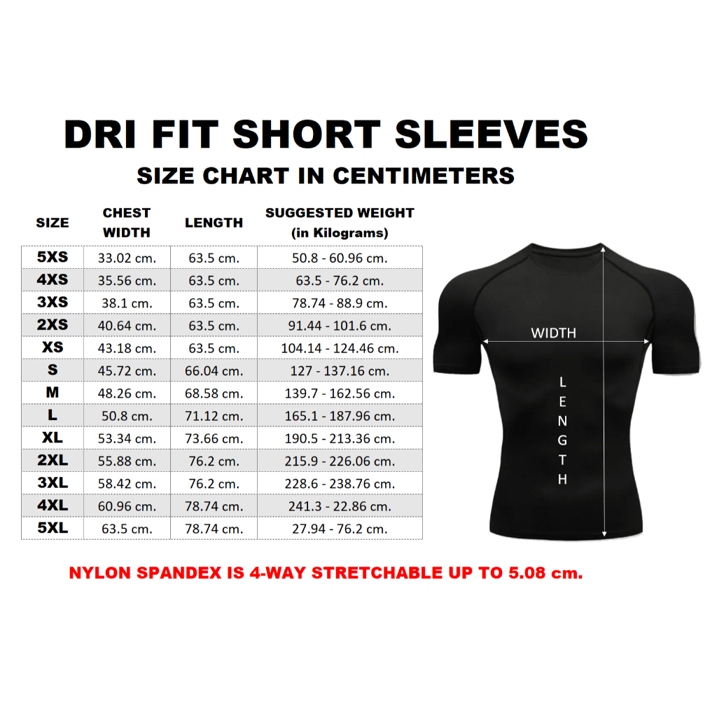 COMPRESSION T-SHIRT NYLON SPANDEX QUICK DRY STRETCHABLE BREATHABLE - UNISEX WET/DRY SPORTS 5XS-5XL