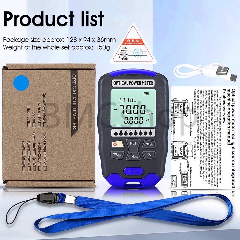 COMPTYCO AUA-DC70 10MW OPTICAL POWER METER+VISUAL FAULT LOCATOR+LED+NETWORK TEST 4IN1 LITHIUM CELL