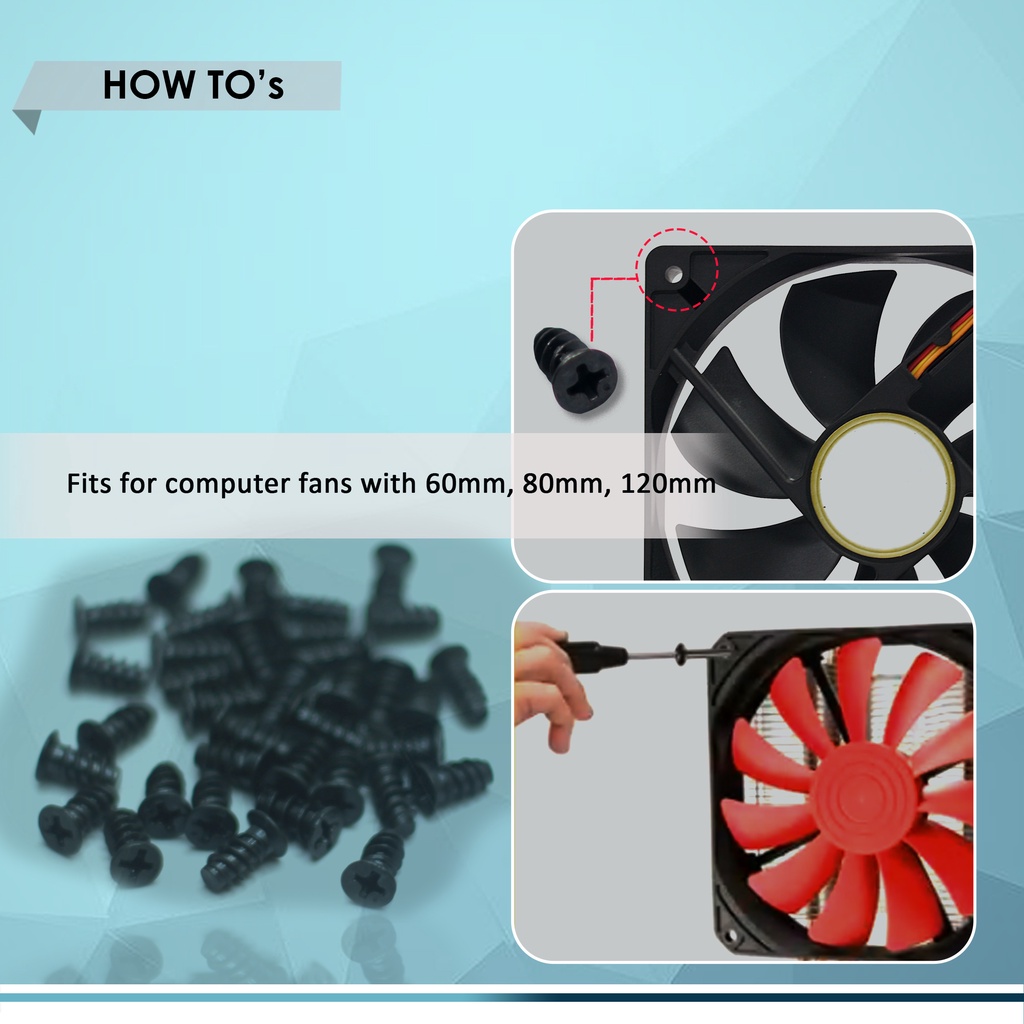 COMPUTER FAN SCREW BLACK M5x10mm, BEST FOR MOUNT SCREWS FOR 60mm, 80mm, 120mm FAN