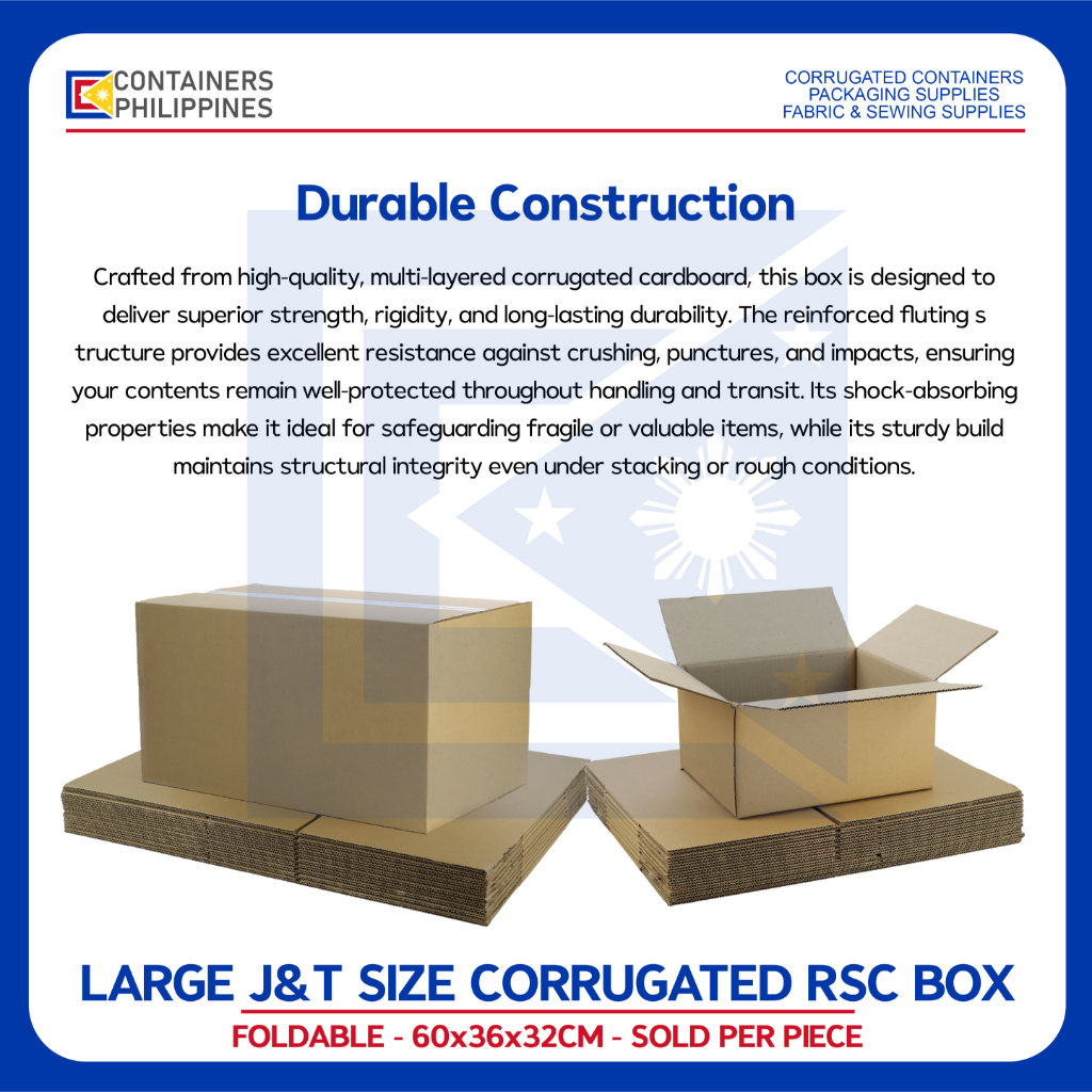 CONTAINERS.PH JNT Size Corrugated Shipping Kraft Box LARGE (60X36X32cm) - Per Piece