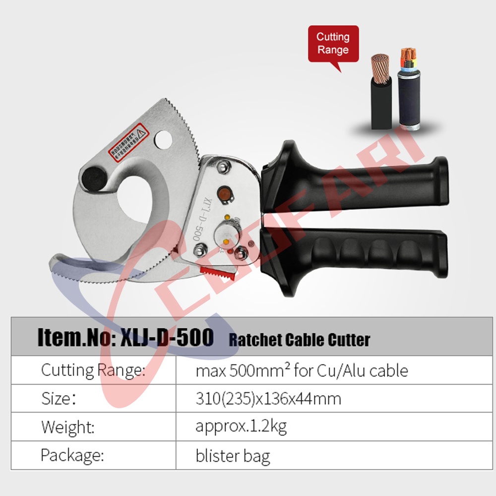 COOFARI Heavy Duty Ratchet Cable Cutter Cut Up To 500mm2 Ratcheting Wire Cut Hand Tool XLJ-D-500