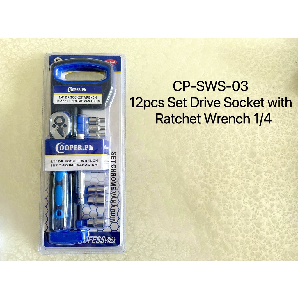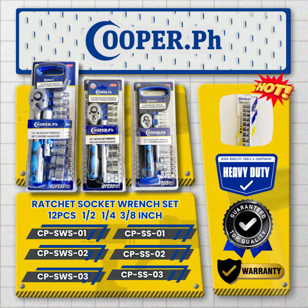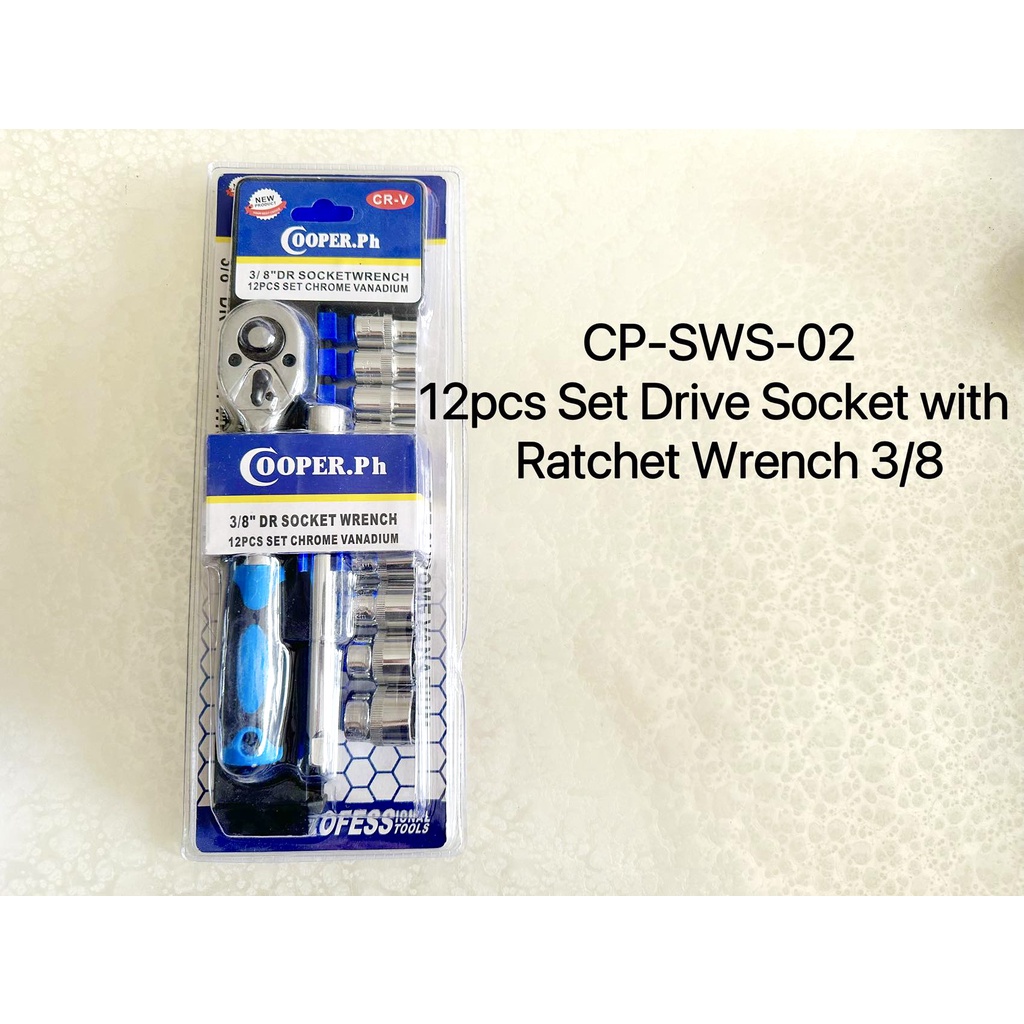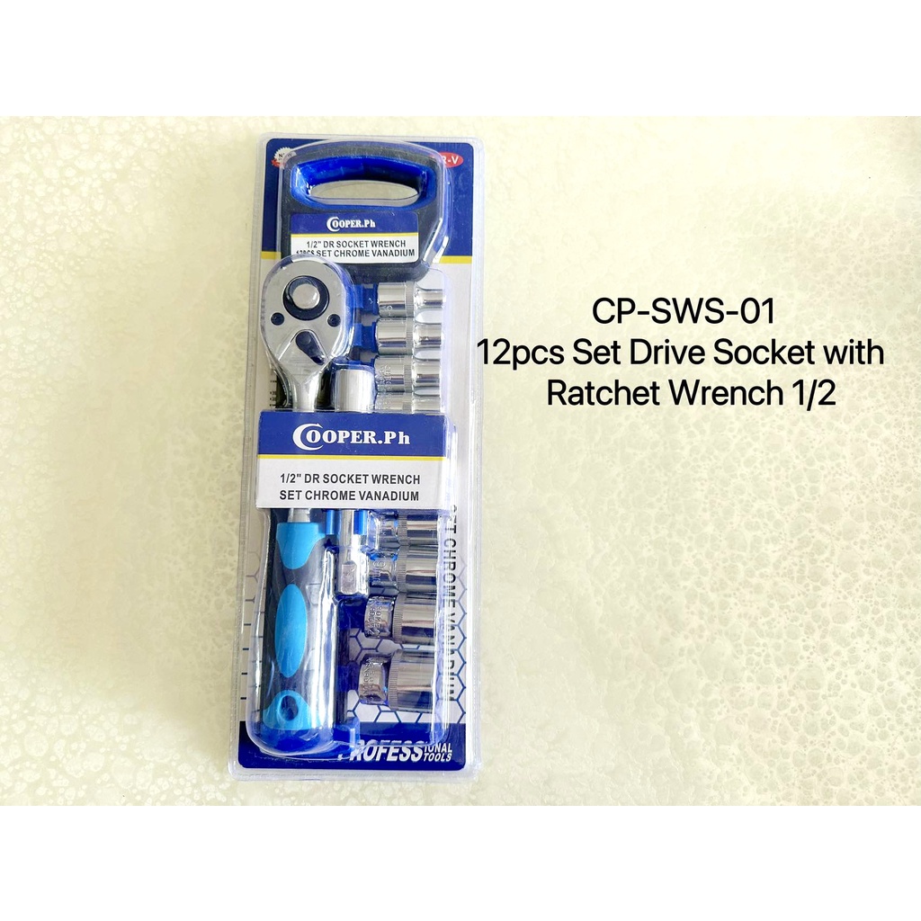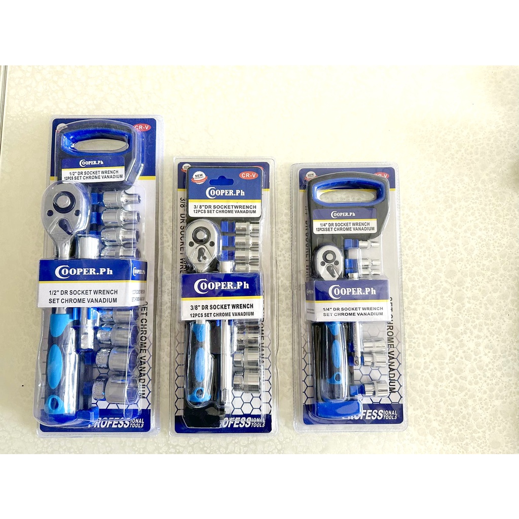 COOPER.PH CRV Ratchet Socket Wrench Set 12pcs 1/2,1/4,3/8 Inch CR-V Ratchet Socket Wrench Set CRV